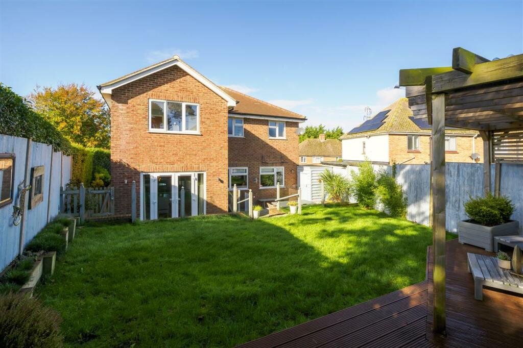 The property is a three-bedroom detached house with two bathrooms, offering over 1,500 sq ft of living space and situated on a plot of 1,546 sq ft. The photos reveal a recently constructed or extensively renovated home, presented to a high standard. The interior is modern and well-maintained, with a contemporary kitchen and bathrooms. The property benefits from an enclosed garden, which appears well-maintained and includes a patio area and pergola. The location in Chartham offers proximity to a mainline train station (Chartham station, 0.90 KM) providing convenient access to Canterbury and other areas. There are also several schools within a reasonable distance, including Chartham Primary School (0.57 KM) and Apple Tree Children’s Centre (0.40 KM). While specific Ofsted ratings aren’t provided for all nearby schools, the presence of several schools nearby is a positive aspect for families. The area appears to be residential, with a mix of housing styles. The property’s list price of £500,000 needs to be considered in the context of comparable properties in the area. Unfortunately, the provided data on nearby listings does not include square footage, making a precise price-per-square-foot comparison impossible. However, the property’s size, condition, and features suggest that the list price could be competitive within the Chartham market, though further analysis with accurate comparable property data would be necessary to confirm this.