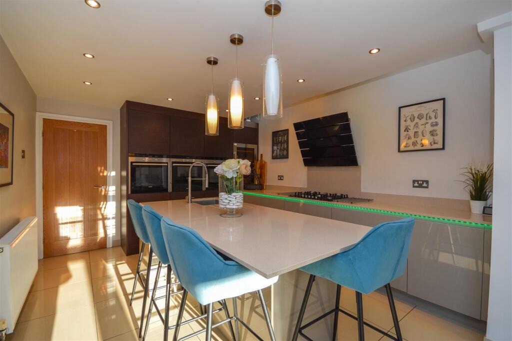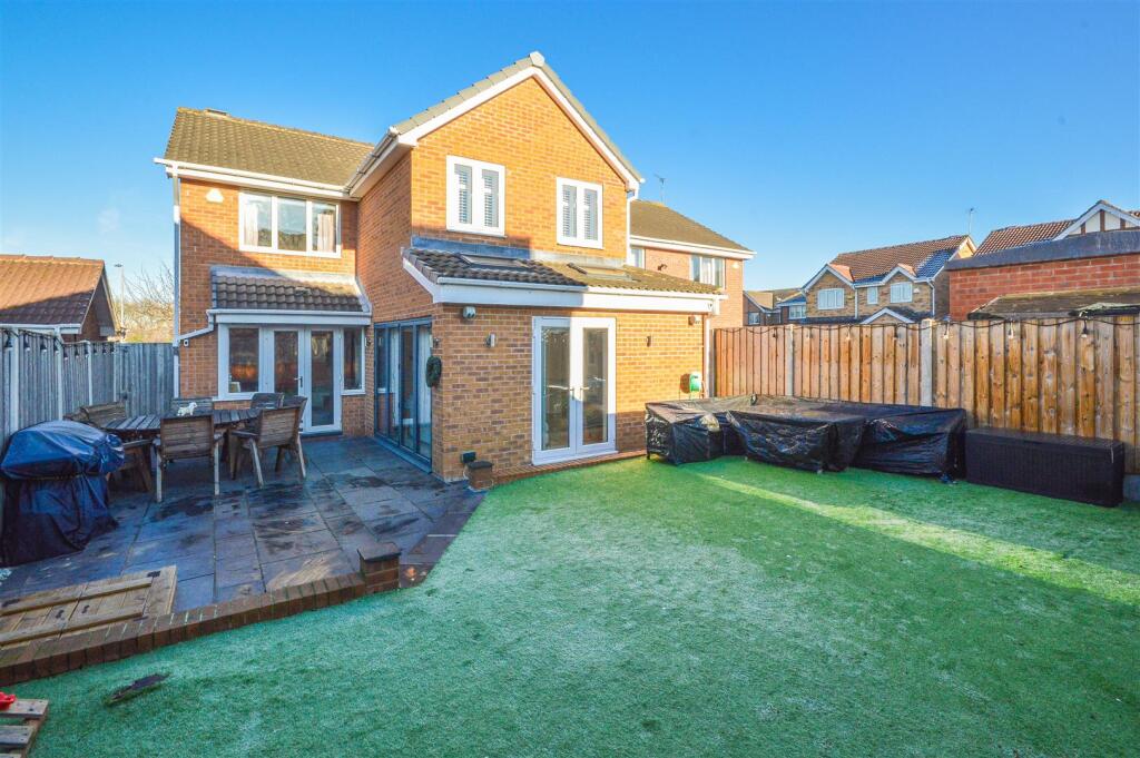 This four-bedroom detached house in Queensbury Court, Normanton offers a desirable combination of modern amenities and family-friendly features. The property boasts a newly renovated kitchen with high-quality appliances and a spacious open-plan layout ideal for modern living. The bathrooms also appear to be updated, adding to the property’s overall appeal. The images display a well-maintained rear garden, suitable for family activities. The location benefits from relatively easy access to several well-regarded schools and Normanton train station. However, the absence of specific details regarding the immediate surroundings and the lack of precise plot size information limits the full assessment of the property’s value and potential. Further investigation into local pricing data per square foot would be beneficial in solidifying a conclusive valuation. The current list price seems consistent with comparable properties in the area but needs further data for conclusive analysis. Overall, this property appears to be a good option for families seeking a well-maintained home in a convenient location with a modern interior.