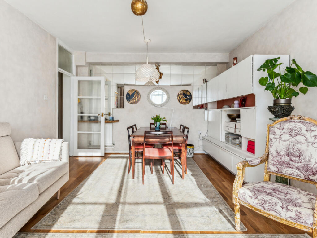 A spacious and bright two double bedroom apartment, with additional office space, a balcony and parking space in a portered building close to Russell Square