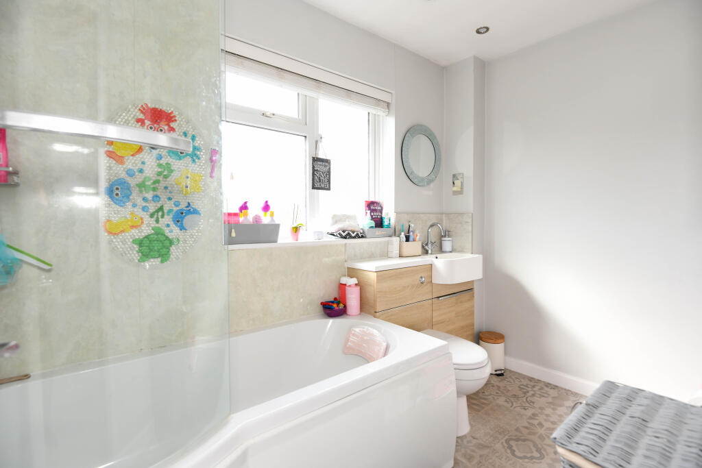 A good sized, well presented family home in a highly regarded area close to popular school, shops & parkland/riverside walks. Living room, updated kitchen/dining room with patio doors onto garden, cloakroom, utility, office & refitted bathroom. UPVC dg, gas ch, double driveway & good sized garden.