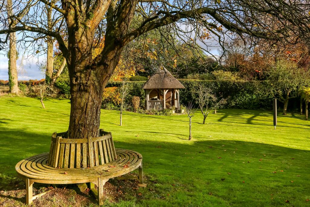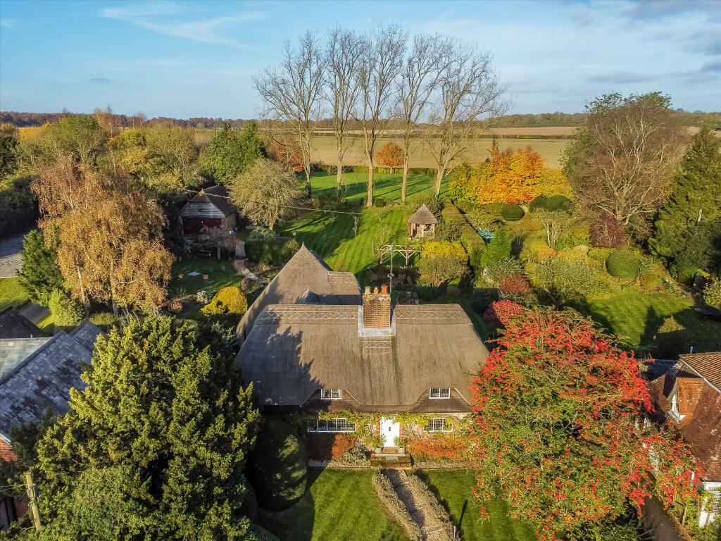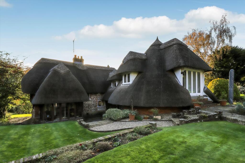 This Grade II listed thatched cottage in Crawley, Winchester, is a charming property with notable features. Its picturesque exterior, featuring a thatched roof and well-maintained landscaping, creates an immediate visual appeal. The interior images showcase a blend of traditional and contemporary elements; some rooms appear recently renovated with modern fittings such as in the kitchen, while others retain their characterful period features, as seen in the living room with its exposed beams and fireplaces. The property benefits from a significant amount of land, providing a generous garden area with mature plantings. The presence of a gazebo and other features in the garden suggests a lot of space for outdoor leisure. The location in the desirable village of Crawley presents a balance between a quiet rural setting and the amenities of nearby Winchester. While being relatively close to Winchester’s transport links and amenities, it also maintains its village charm and peacefulness. The inclusion of various rooms and living spaces, including a sunroom, hints at a considerable amount of internal living space, even though an exact square footage is not provided. The property’s unique architectural features and extensive grounds, coupled with its advantageous location, justify its position in the higher end of the housing market. The lack of precise information, particularly regarding square footage, prevents a conclusive evaluation of price per square foot in order to compare it to other properties, making direct comparisons difficult. However, given comparable properties in the area, the price seems in line with market values for properties with similar attributes, despite the lack of information to confirm square footage. Overall, this property represents a rare combination of character, location, and land, making it an attractive offering for the right buyer. However, potential buyers should factor in the substantial maintenance costs associated with a Grade II listed thatched roof and the unique requirements of maintaining such a property.