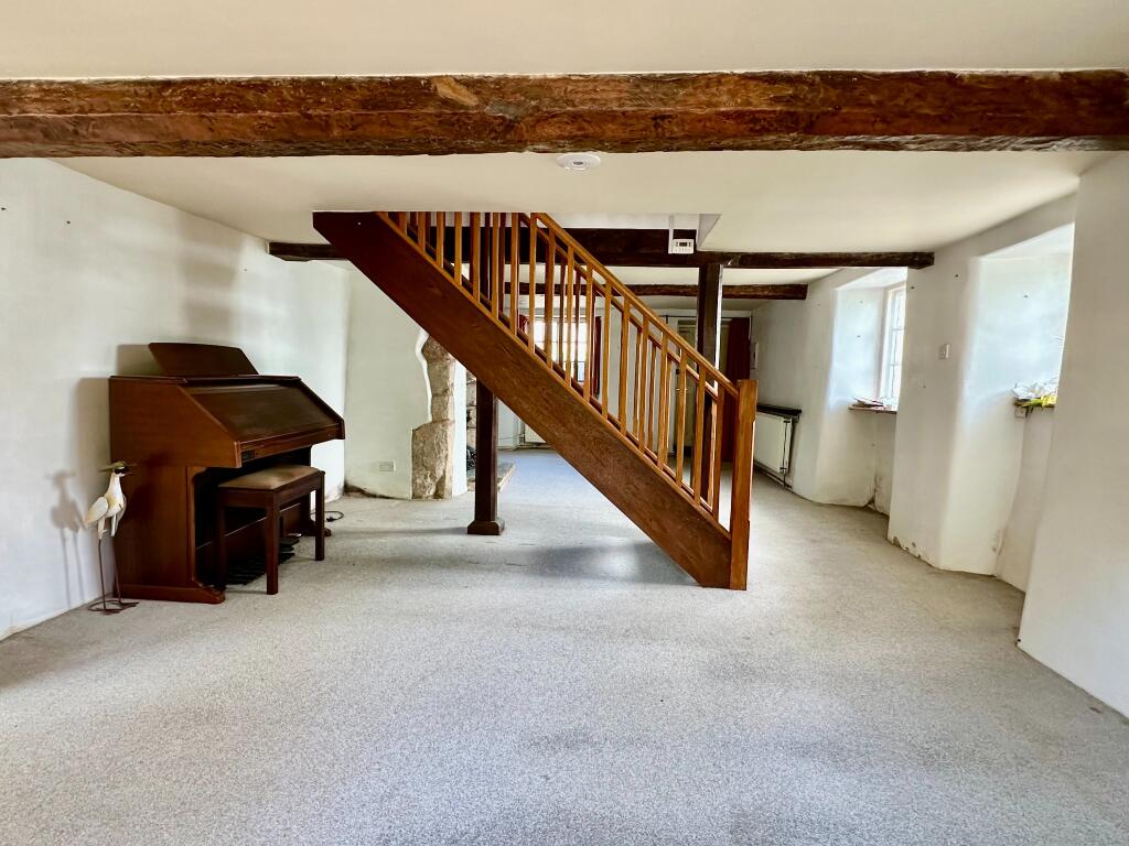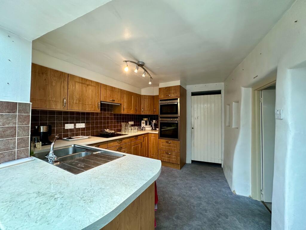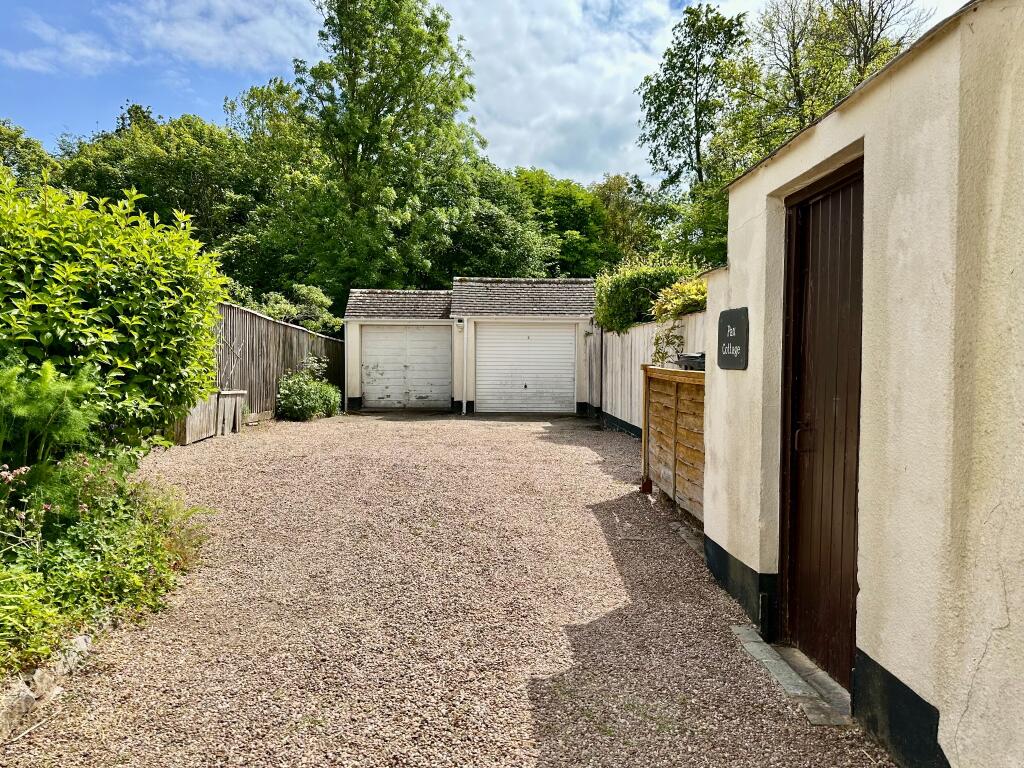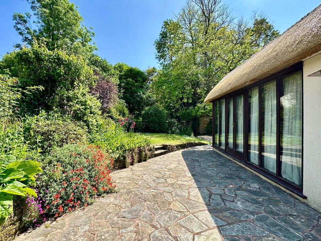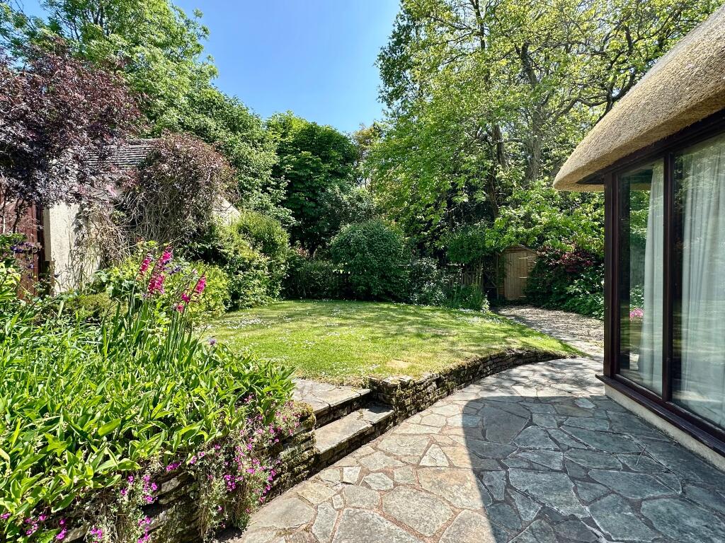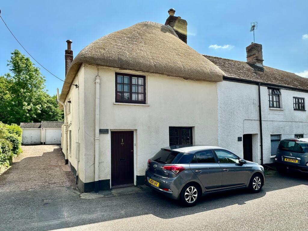 An attractive Grade 11 Listed end terrace Character cottage with a newly thatched roof and superb South -facing rear garden with a small stream to the rear boundary enjoying much privacy. There is also driveway parking for several cars leading to two adjoining garages.