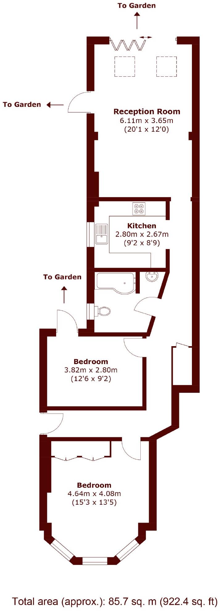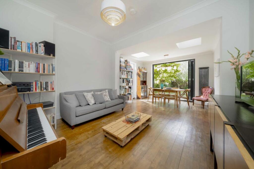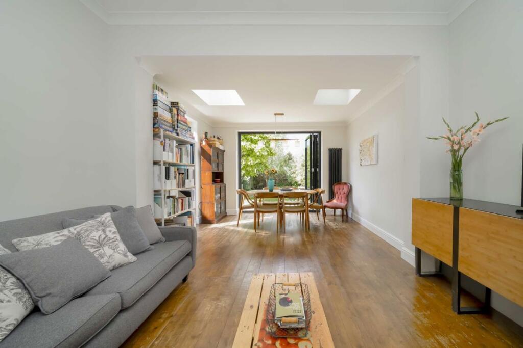 This charming, two-bedroom ground floor garden flat comprises a spacious reception room with bifold doors leading out to a private, south-west facing garden, a separate kitchen with integrated appliances, two great sized bedrooms and a four-piece family bathroom.