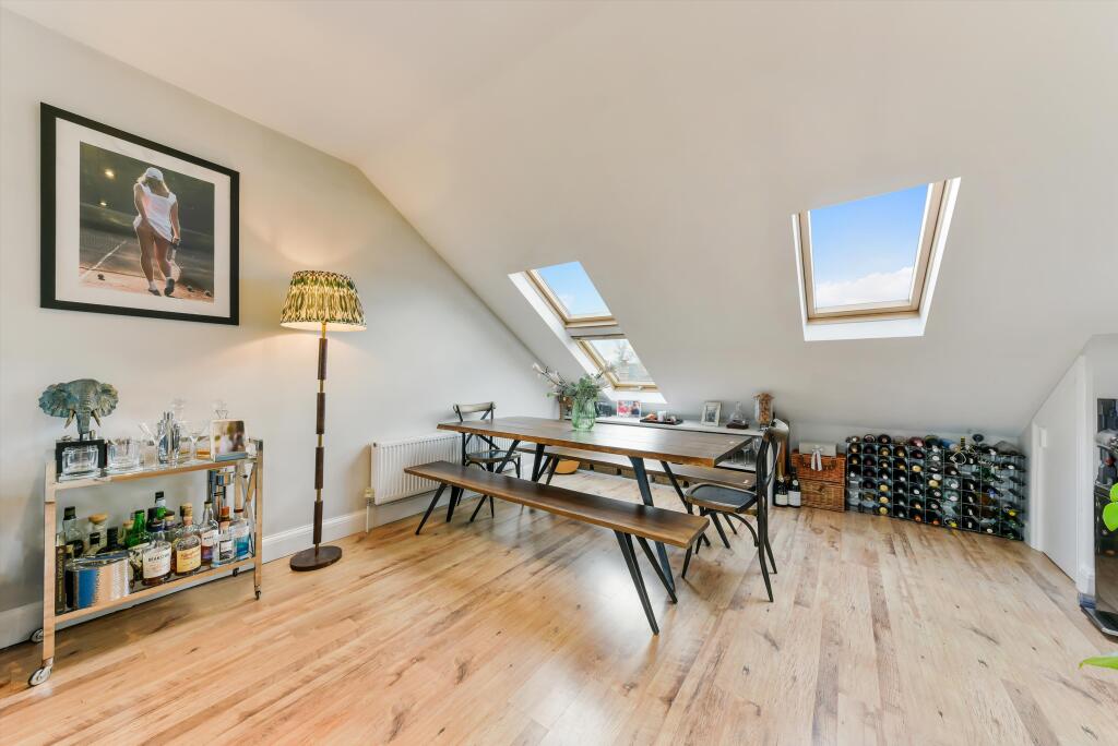 This property is a one-bedroom duplex flat located on Dornton Road in the SW12 postcode of London. It is listed by Knight Frank at £575,000. The property boasts a modern and stylish interior, as evidenced by the high-quality images showing a renovated kitchen, bathroom, and living spaces. The flat includes a rooftop terrace, offering some outdoor space, although it appears compact. The area benefits from good transport links via nearby underground stations and is within reasonable proximity to parks and well-regarded primary schools. Whilst the lack of specific details regarding square footage and plot size limits a precise market valuation, considering nearby comparable properties, the listing price appears reasonable, reflecting current market conditions in the area. Potential buyers should verify the square footage and conduct further due diligence before purchase. The location is a key positive as is the contemporary interior condition. The absence of a larger garden may be a limiting factor for some prospective purchasers.