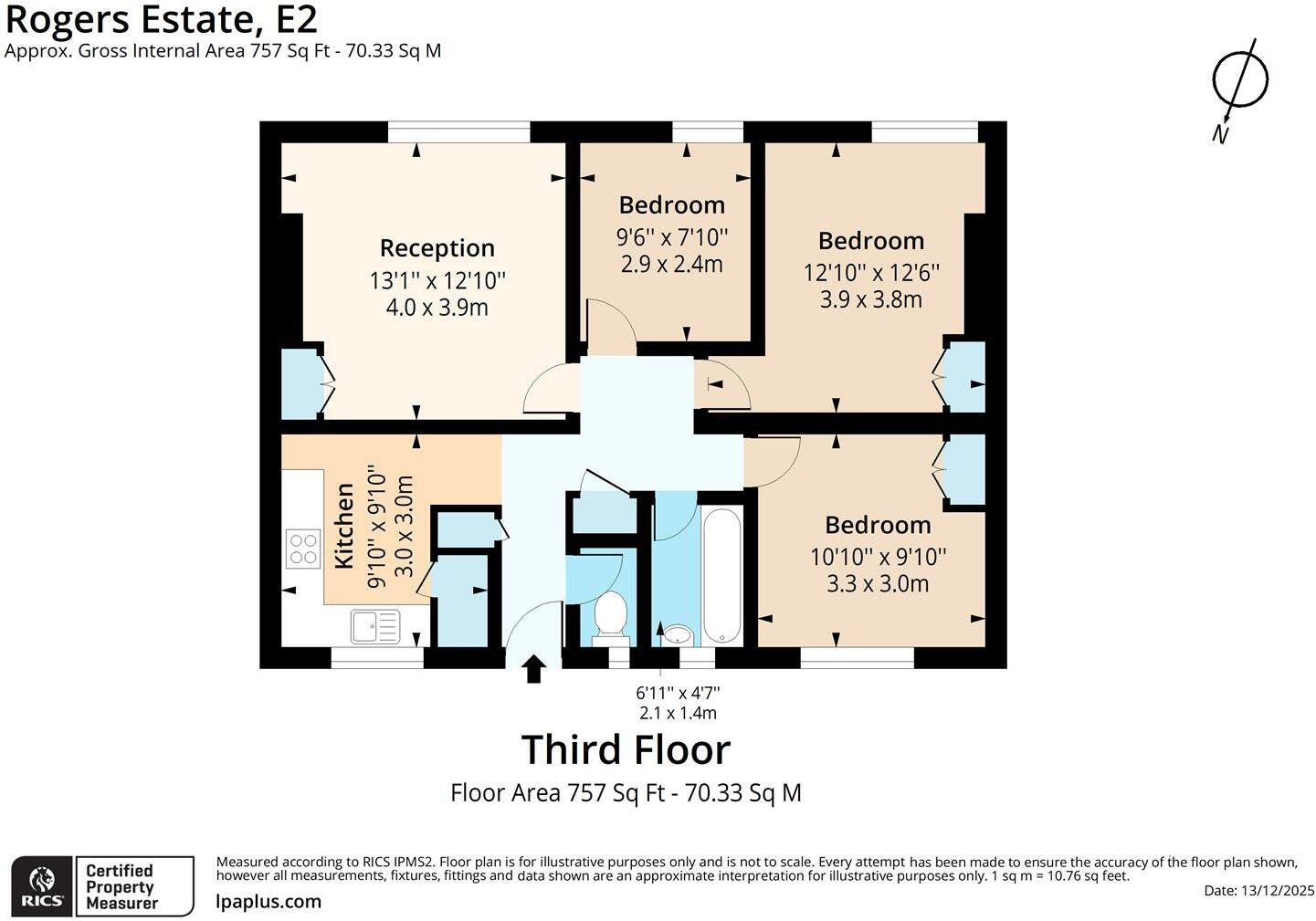 This is a three-bedroom flat in Bethnal Green, London. The property is in a good location, close to schools, transport, and local amenities. However, the property is in need of renovation and modernisation. The property is listed at £425,000, which is below the average price for the area, representing fair value. The flat is 757.03 sqft which is below the average sqft for the area of 787 sqft. There is no garden or land included with the property. Nearby transport links include Cambridge Heath and Bethnal Green Rail.