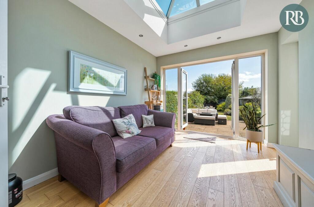 Fantastic detached family home with a beautifully landscaped sunny garden, generous living space with an Orangery, three good sized bedrooms, luxury bathroom and ground floor WC, wide side access and paved driveway for several cars