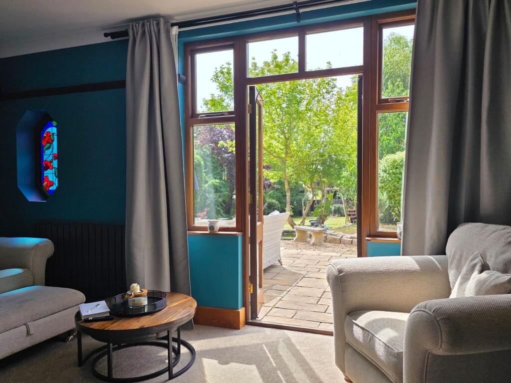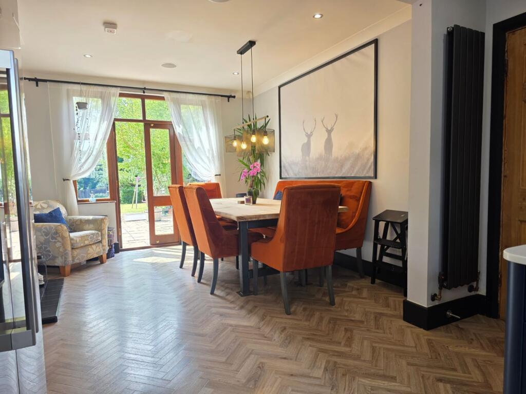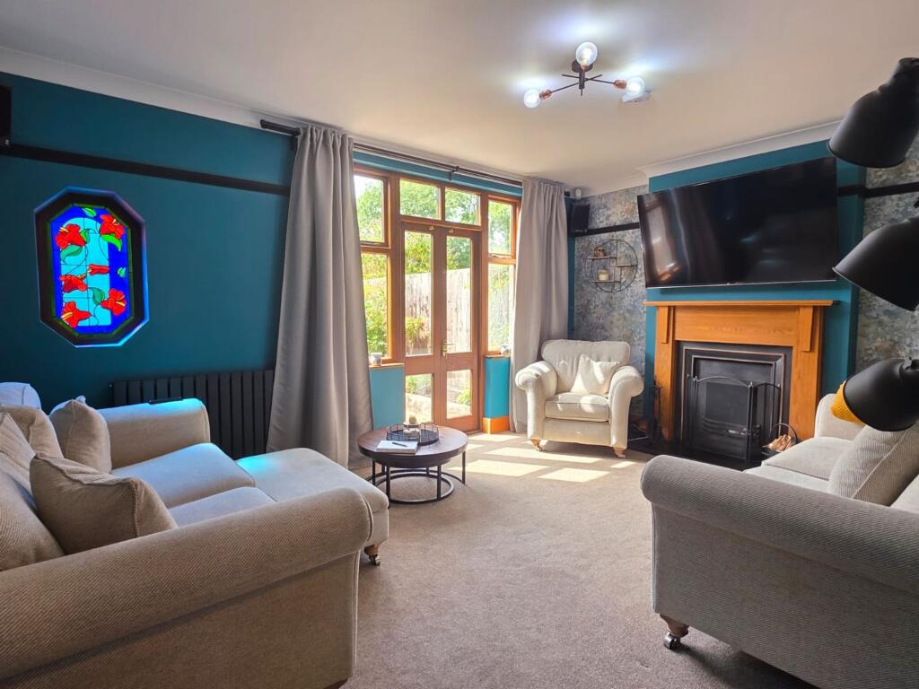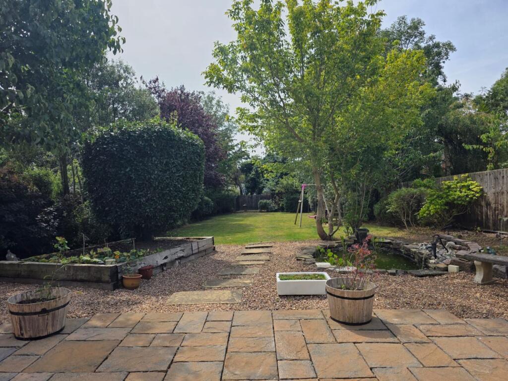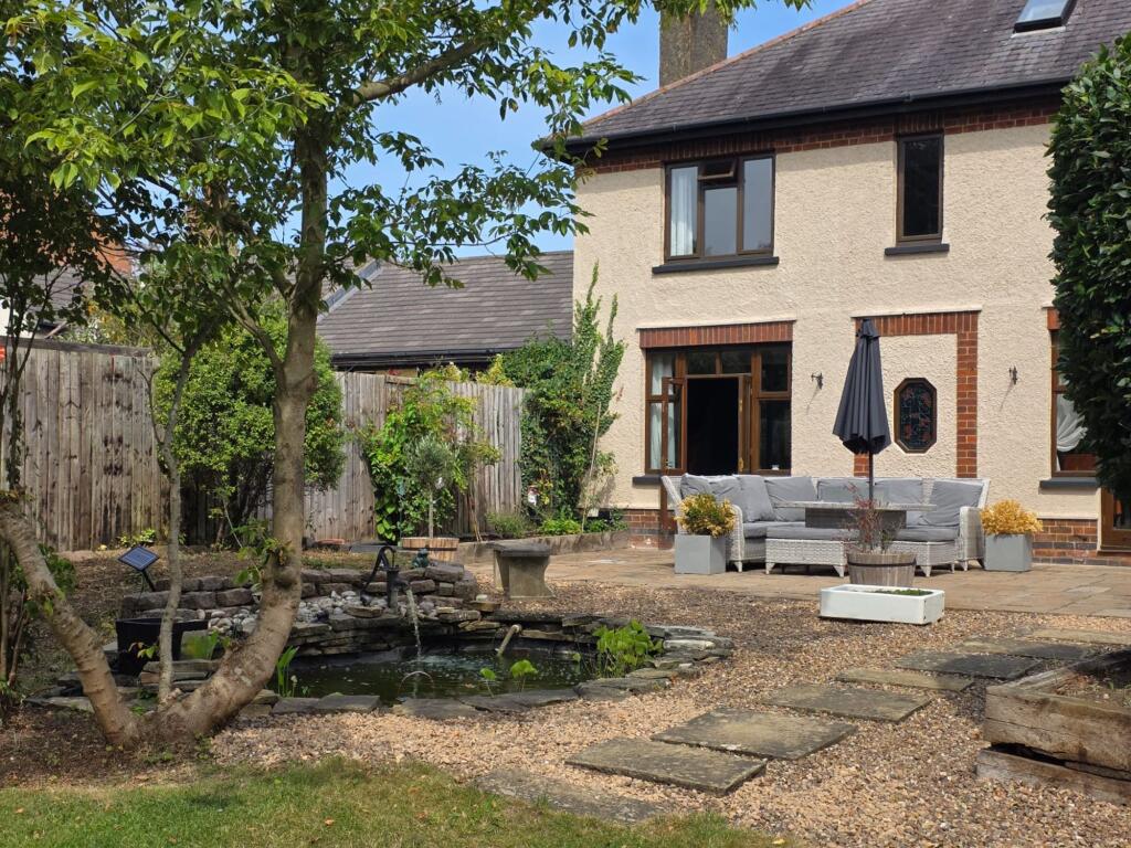 This is a five-bedroom property located on Welby Lane in Melton Mowbray. The house appears to be in good condition, with a modern kitchen and well-maintained interior. It features a generous garden with a pond and patio area. The property is situated in a residential area with access to local schools and amenities. The listing price of £475,000 seems reasonable given the property’s features and location. The property retains some of its traditional features but has been modernised. The property benefits from off street parking and a garage.