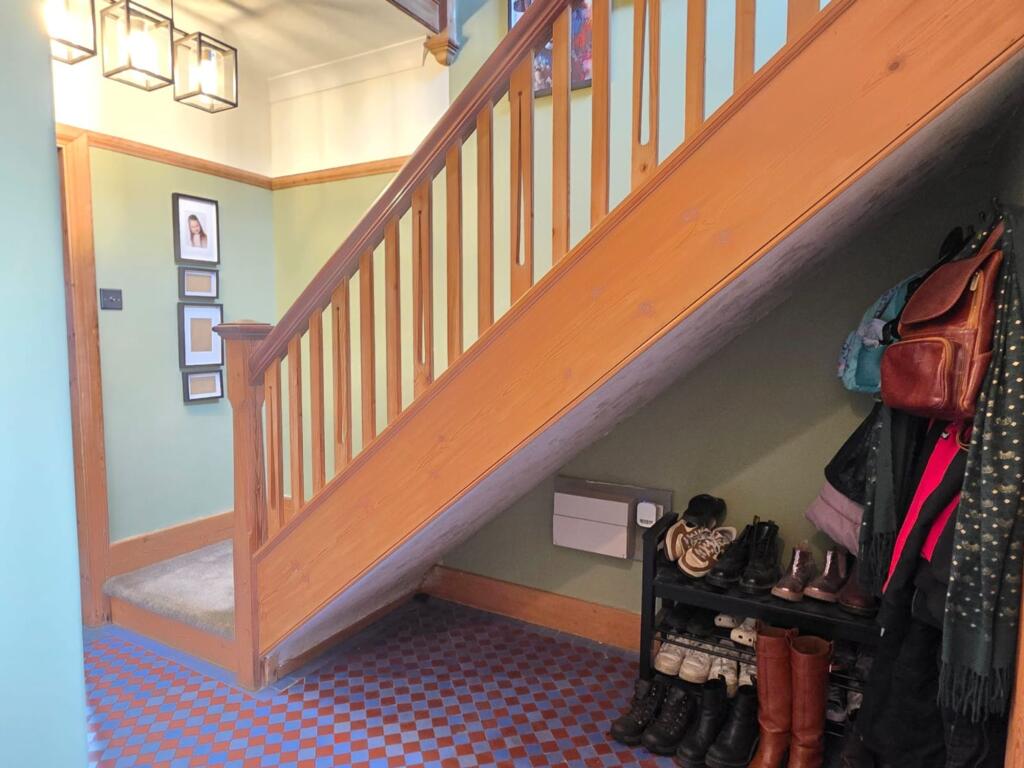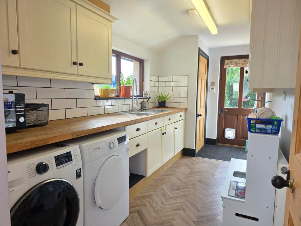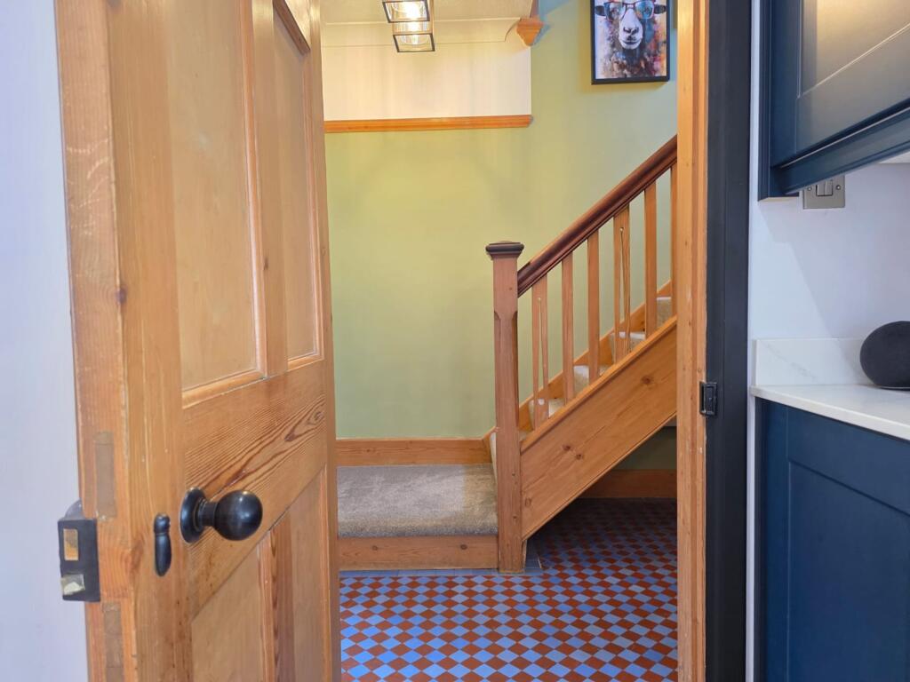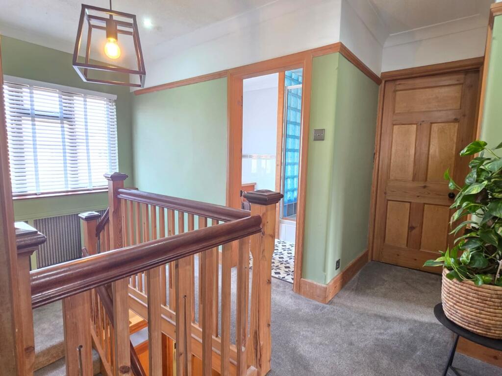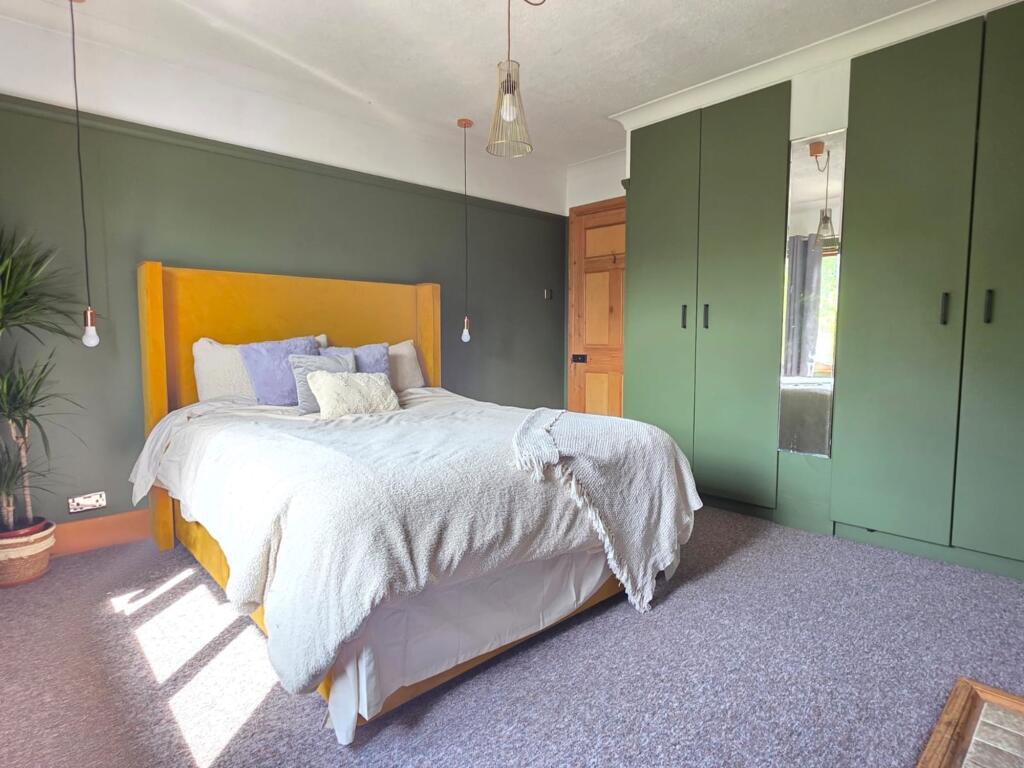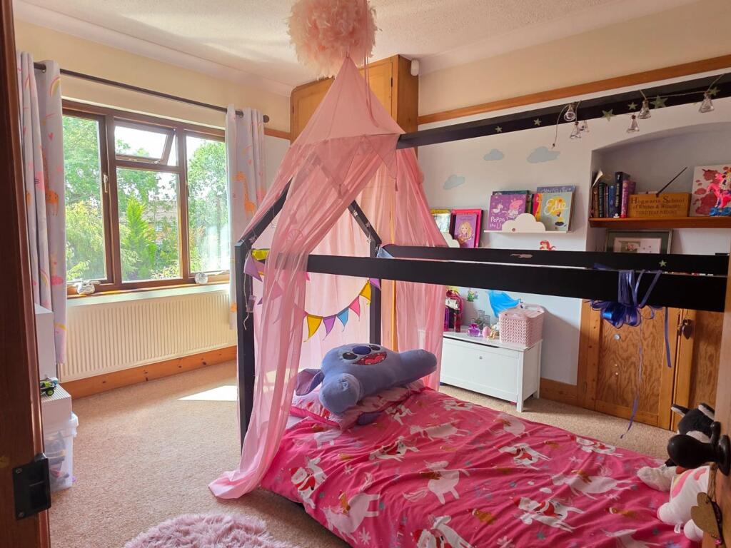 This is a five-bedroom property located on Welby Lane in Melton Mowbray. The house appears to be in good condition, with a modern kitchen and well-maintained interior. It features a generous garden with a pond and patio area. The property is situated in a residential area with access to local schools and amenities. The listing price of £475,000 seems reasonable given the property’s features and location. The property retains some of its traditional features but has been modernised. The property benefits from off street parking and a garage.