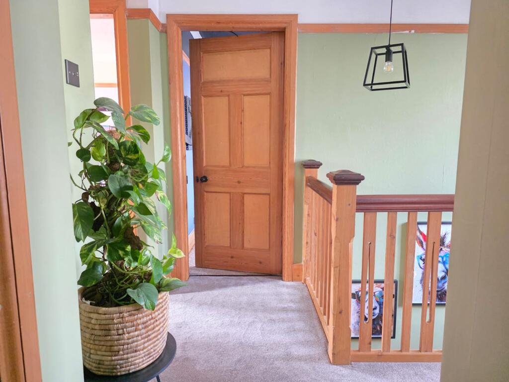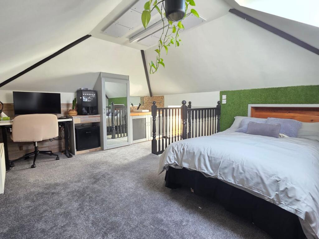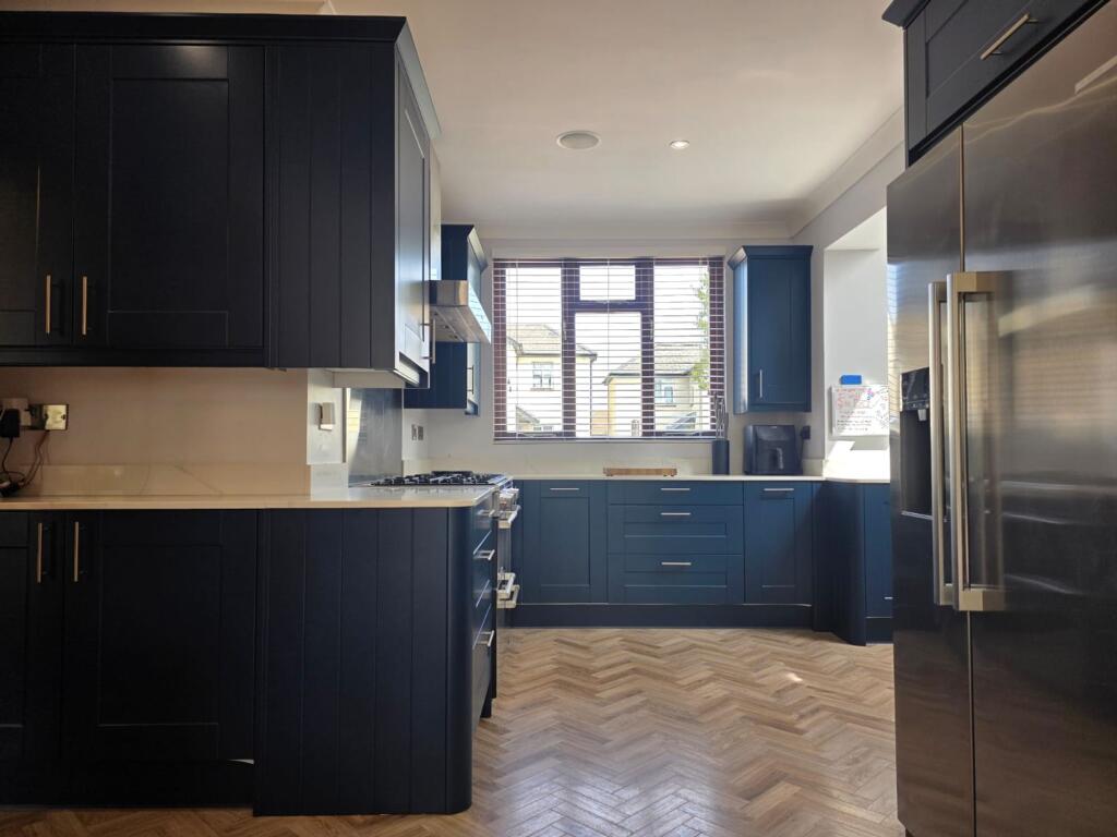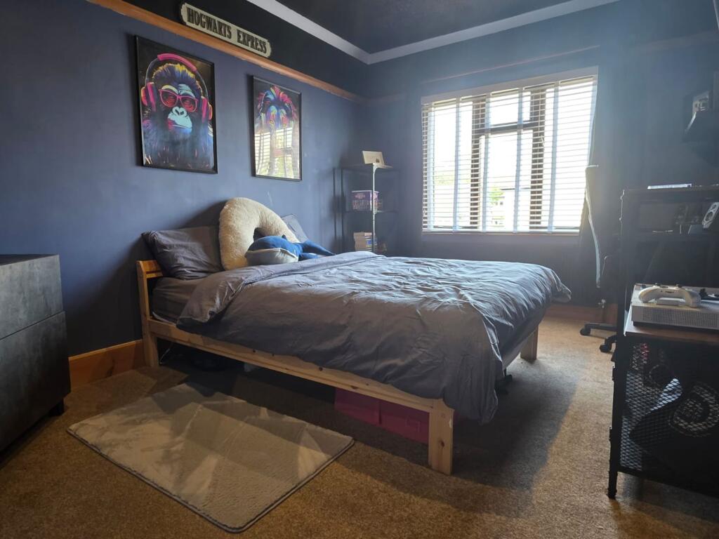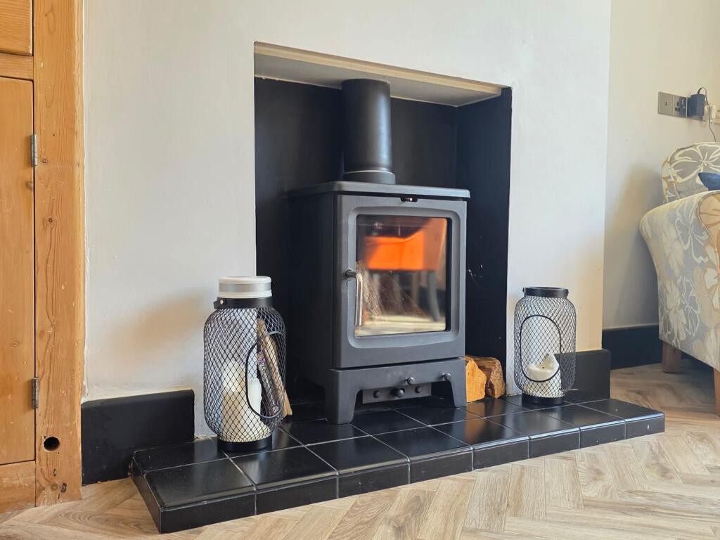 This is a five-bedroom property located on Welby Lane in Melton Mowbray. The house appears to be in good condition, with a modern kitchen and well-maintained interior. It features a generous garden with a pond and patio area. The property is situated in a residential area with access to local schools and amenities. The listing price of £475,000 seems reasonable given the property’s features and location. The property retains some of its traditional features but has been modernised. The property benefits from off street parking and a garage.