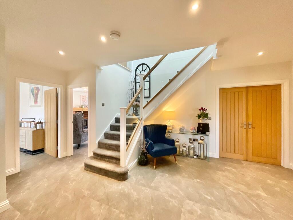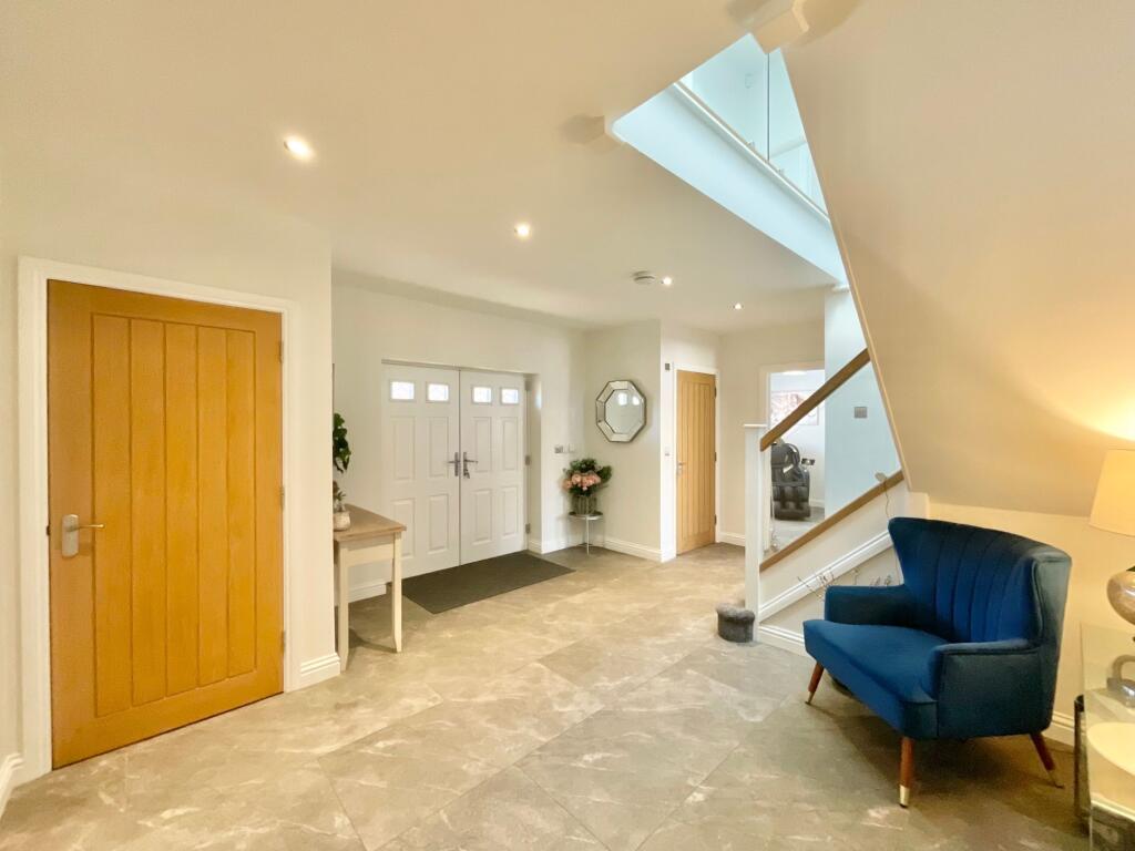 Stunning five bedroom detached family home occupying a generous corner plot of approximately 0.34 acres within a prestigious modern development in Hankelow. Far reaching rural views, expansive private rear garden featuring an impressive 'man cave', detached double garage, five double bedrooms, th...