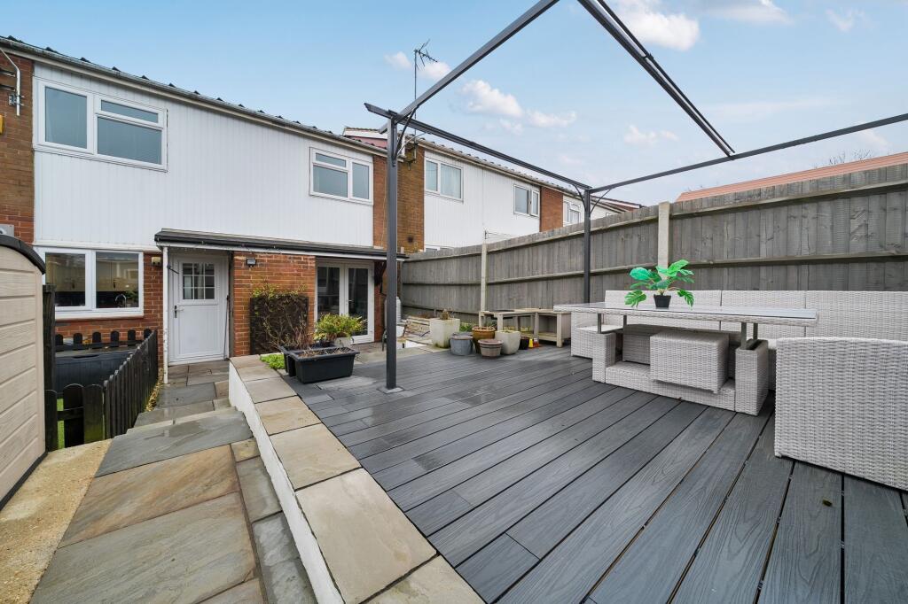 This three-bedroom terraced house in Rossini Close, Basingstoke is listed at £325,000. The property benefits from being close to several schools, including Chalk Ridge Primary School (Good Ofsted rating) and Manor Field Junior and Infant Schools (both Good Ofsted ratings). Basingstoke train station is also within reasonable distance, providing convenient transport links. The house itself appears to be in good condition, with a modern kitchen and updated flooring. The garden is a notable feature, offering a patio area and a shed, suitable for families. However, the average house price in the area is significantly higher (£1,017,824), and the average price per square foot is also considerably more (£431) than what is reflected in the listing price. Therefore, while the property is well-located and in good condition, the list price may be considered low compared to the local market.