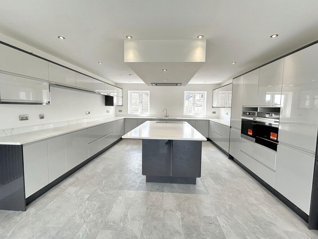Brand new large executive style detached family home | Spacious and contemporary open plan accommodation over 4 floors | 6 bedrooms and 4 bathrooms | Open plan kitchen/ breakfast/ dining/ living room with far reaching views | Lower floor family room/ playroom and cinema room | Atrium style 3 s...