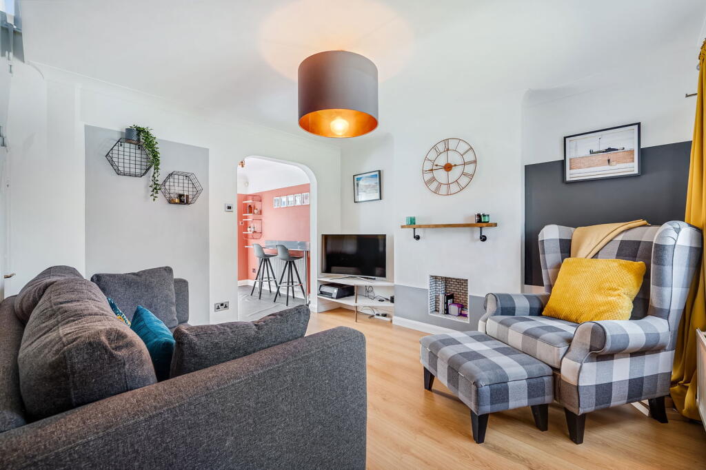 An impressive two bedroom, modern end of terrace property featuring a stunning kitchen diner, luxurious recently fitted bathroom, generous southerly facing gardens, and a detached garage. Ideally situated on a quiet cul-de-sac, this home is just a short distance from local amenit...