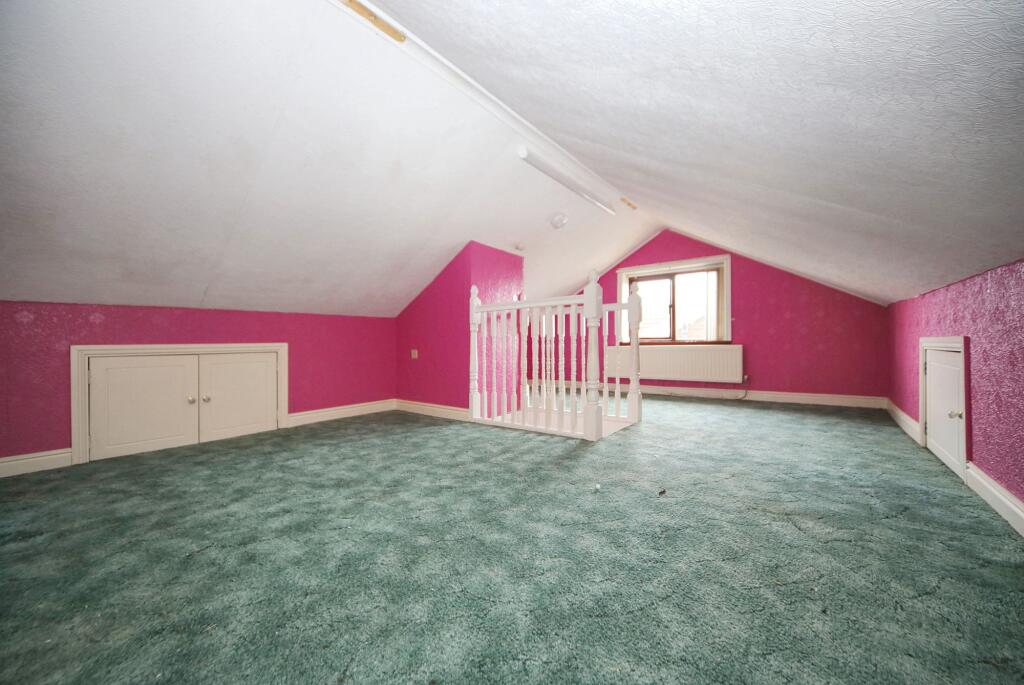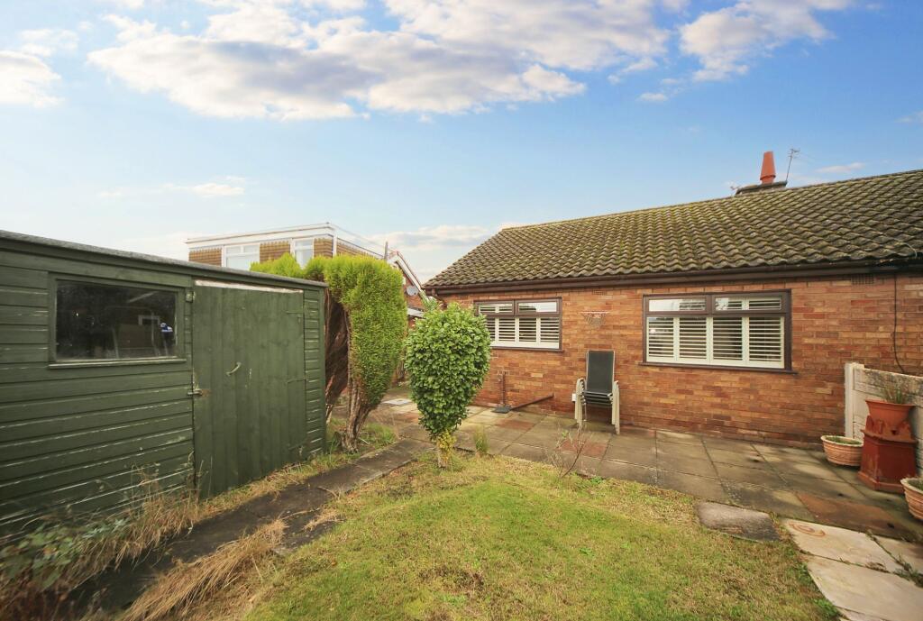 Semi-detached true bungalow with 2 beds, fitted kitchen, shower room, lounge/diner, loft room. Convenient location near amenities, schools, transport links. No chain. EPC-D, Council Tax B.