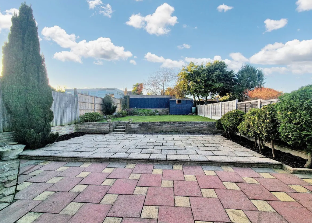 Based on the images, the property includes a garden and patio area. The property appears modern and well-maintained.