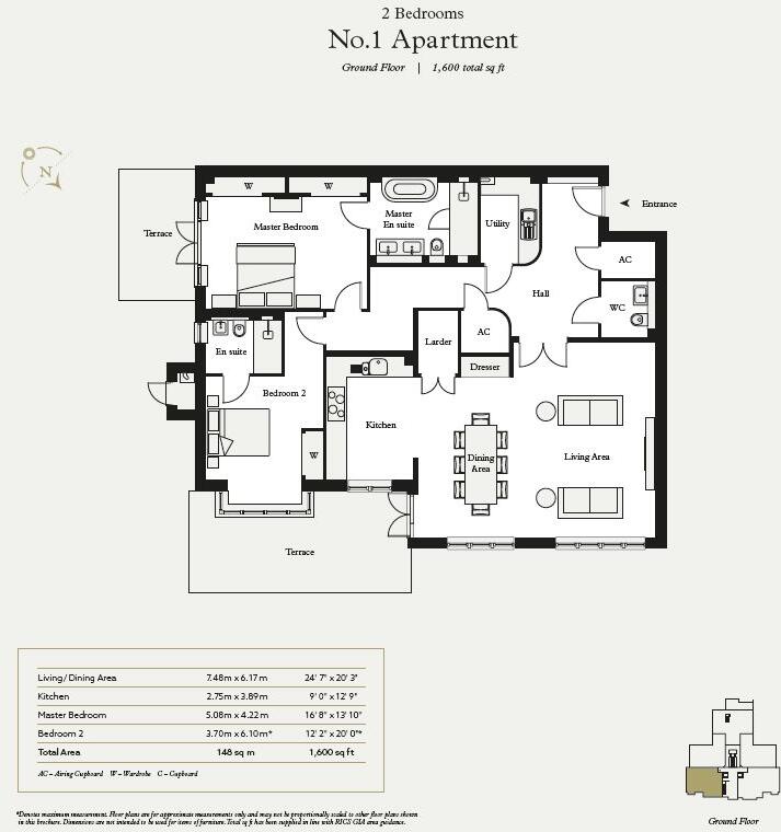 A stunning two bedroom two bathroom ground floor apartment with private terrace. Underground parking with stunning communal gardens.