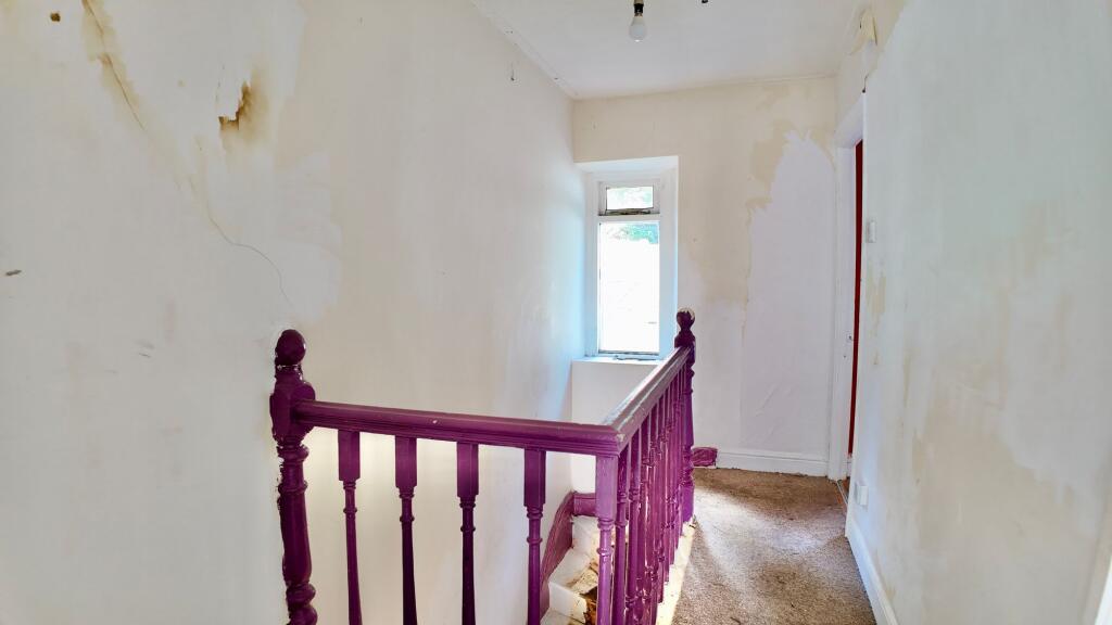 This is a two-bedroom terraced property located on Treharne Street, Treorchy. The property requires extensive renovation, as evidenced by the condition of the walls, bathroom, kitchen, and staircase. While the property includes a garden, it is currently overgrown and requires landscaping. The property is located within a reasonable distance of local schools and transportation links. The asking price of £80,000 reflects the condition of the property, as it is significantly lower than the average price per square foot for the area.