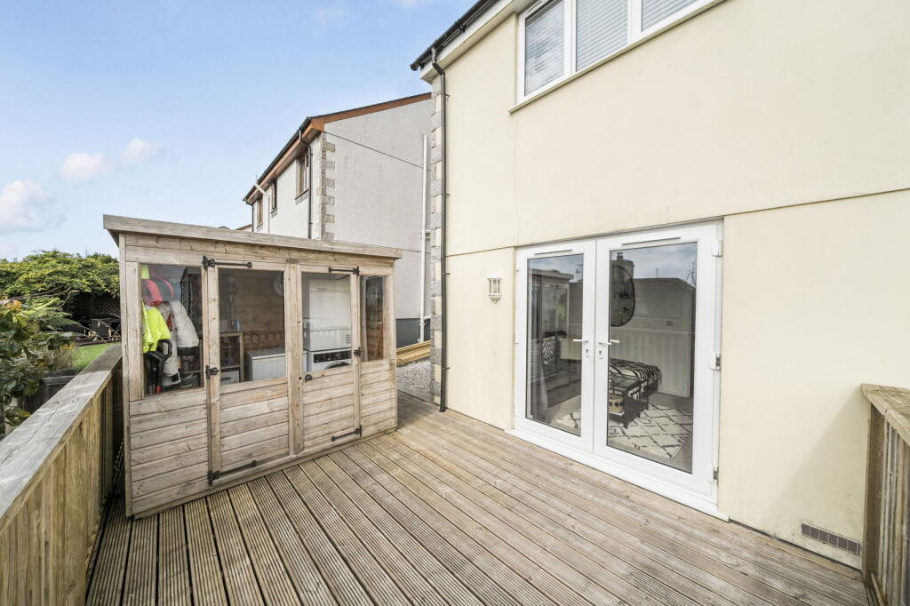 This is a semi-detached property located in Pensilva, Cornwall. The property has 2 bedrooms and 1 bathroom and is listed for £210,000. The property appears to be in good condition, with a modern kitchen and bathroom. The property has a small garden and a decking area. Pensilva Primary School is located within walking distance (0.45km). Menheniot train station is 8.53km away. The average price for similar properties in the area is £380,500.