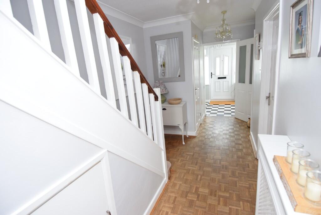 An extended detached house with the accommodation including three reception room, attractive fitted kitchen/family room, utility room, cloakroom, principal bedroom with vaulted ceiling and en-suite, three further bedrooms, ample parking, landscaped rear garden with stunning countryside views.
