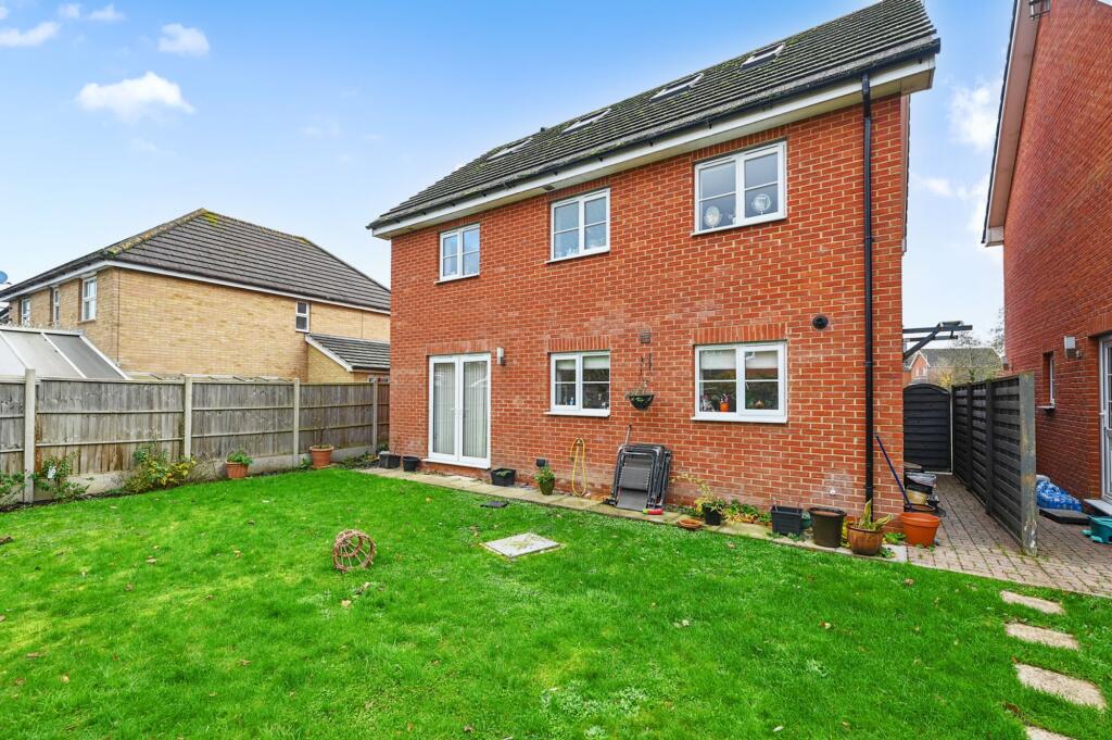 Spacious five bedroom detached home in Knights Park with modern kitchen, three bathrooms, study, private garden, shed, driveway parking, near Tesco and bus to Ashford town and station.