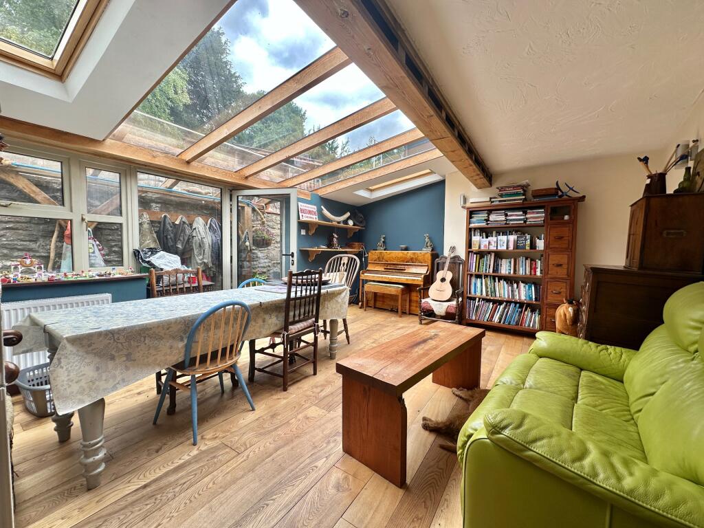A light and charming two bedroom mid-terraced cottage with substantial solid oak framed and hempcrete block built garden annexe with full planning as additional accommodation to the main dwelling.