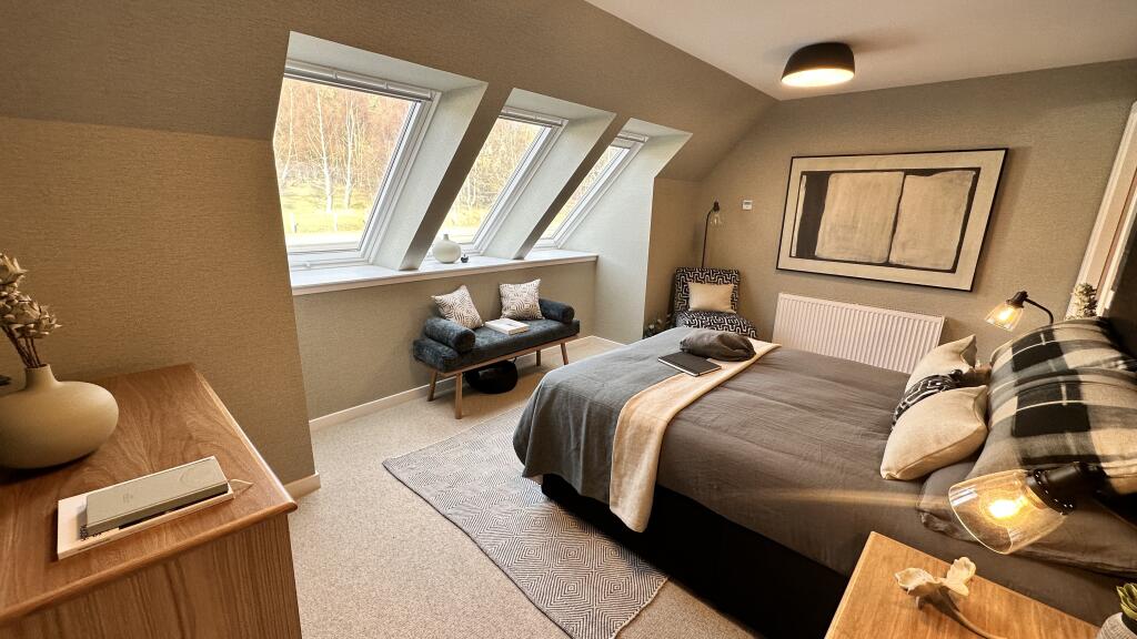 This property is a stunning 4-bedroom detached villa located in Anderson Grove, Kincraig, Kingussie. The property is part of a new luxury housing development. From the photos provided, it appears to be a modern, high-quality home with a well-designed layout and contemporary finishes. The interior features a spacious open-plan kitchen-diner, multiple living areas, and four well-appointed bedrooms, each with its own unique style and design. The house boasts large windows and modern fittings. Externally, the property offers a well-maintained garden and a double garage. The setting is tranquil, and the local area is scenic. The price seems competitive for the region, though a precise assessment would benefit from the property’s square footage. The absence of information regarding nearby amenities (schools, transportation, etc) limits a complete evaluation of its desirability. Potential buyers should prioritize obtaining complete property details and conducting their own research regarding local amenities and market conditions.
