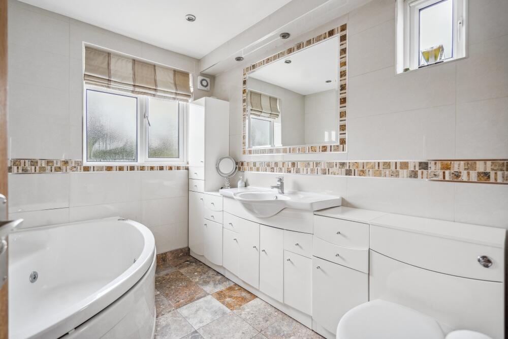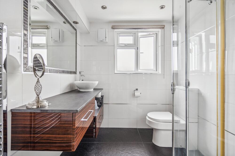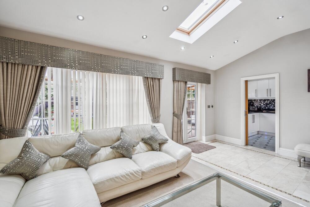 This four-bedroom, three-bathroom semi-detached house located on Upton Court Road, Langley, Slough presents itself well. The property boasts a modern and updated interior, featuring a renovated kitchen, updated bathrooms, spacious living areas, and a sizeable garden. The exterior also looks to be in good condition. The inclusion of a converted garage, offering additional living space, adds to the property’s value.