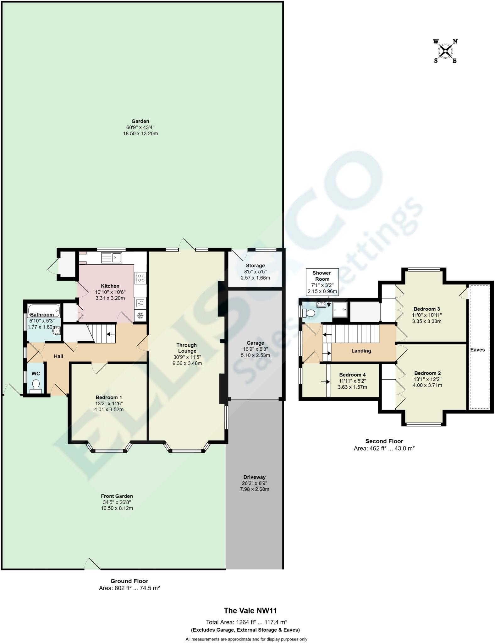 This is a link-detached house in Golders Green, London. The property features three bedrooms and two bathrooms, with a total square footage of 1,263.68 sqft and a plot size of 2,628.55 sqft. The house appears to be in good condition, with a modern kitchen and bathrooms. It also benefits from a well-maintained garden and garage. The location is desirable, with good access to local amenities and schools. The list price is £975,000, which is higher than the average price per sqft in the area but seems reasonable given the property’s condition and features.