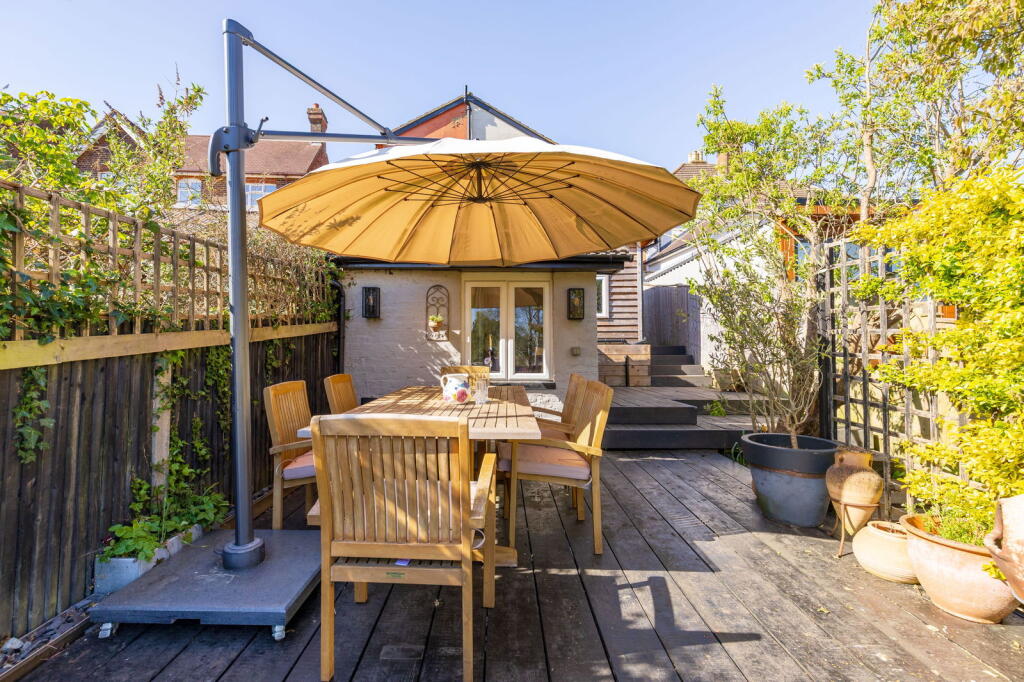 This property is a 2 bedroom, 2 bathroom semi-detached house located in Stoke, Guildford. The property is well presented and has been recently modernised to a high standard. It benefits from a good size garden with a decked area, and also has access to a waterway. The location is convenient for access to Guildford town centre and local amenities. Transport links are also good with several train stations within a reasonable distance. The property is priced at £550,000 which is slightly above the average price for the area, however given the size, condition and location, it is a reasonable price.