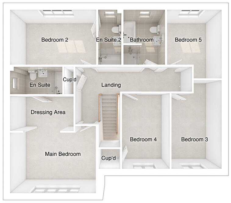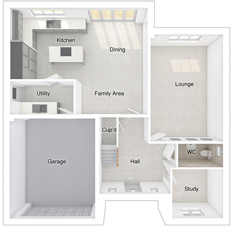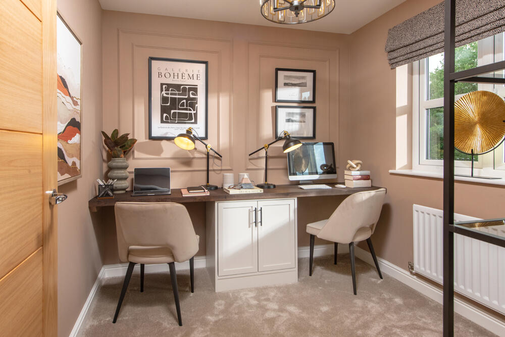 This 5-bed home with integral garage and block paved driveway features an open plan kitchen/dining/family area with island and French doors to the patio and garden. Theres a spacious lounge, study and utility room too. There are two with en-suites and a family bathroom, all with rainfall showers.