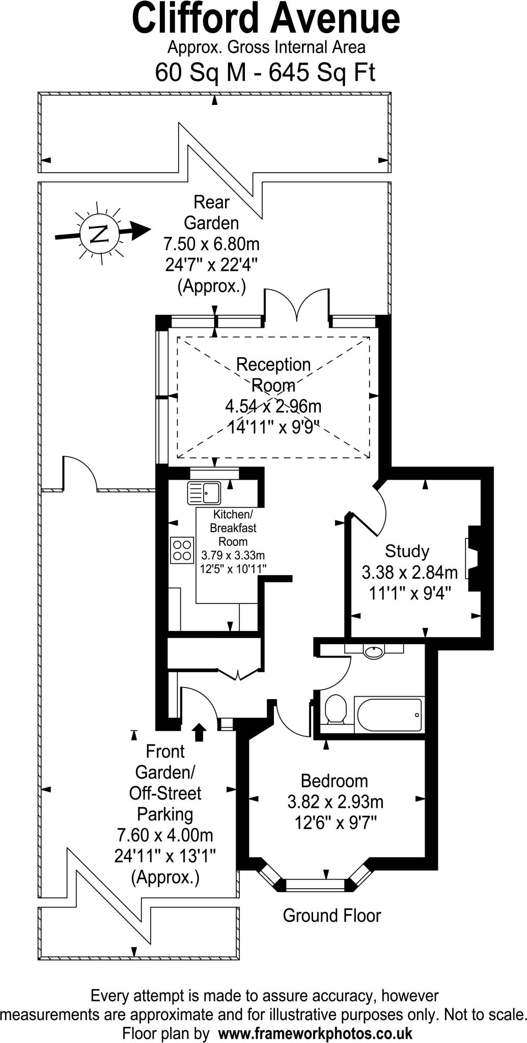 A ground floor one-bedroom maisonette with its own private garden and off street parking. No chain.