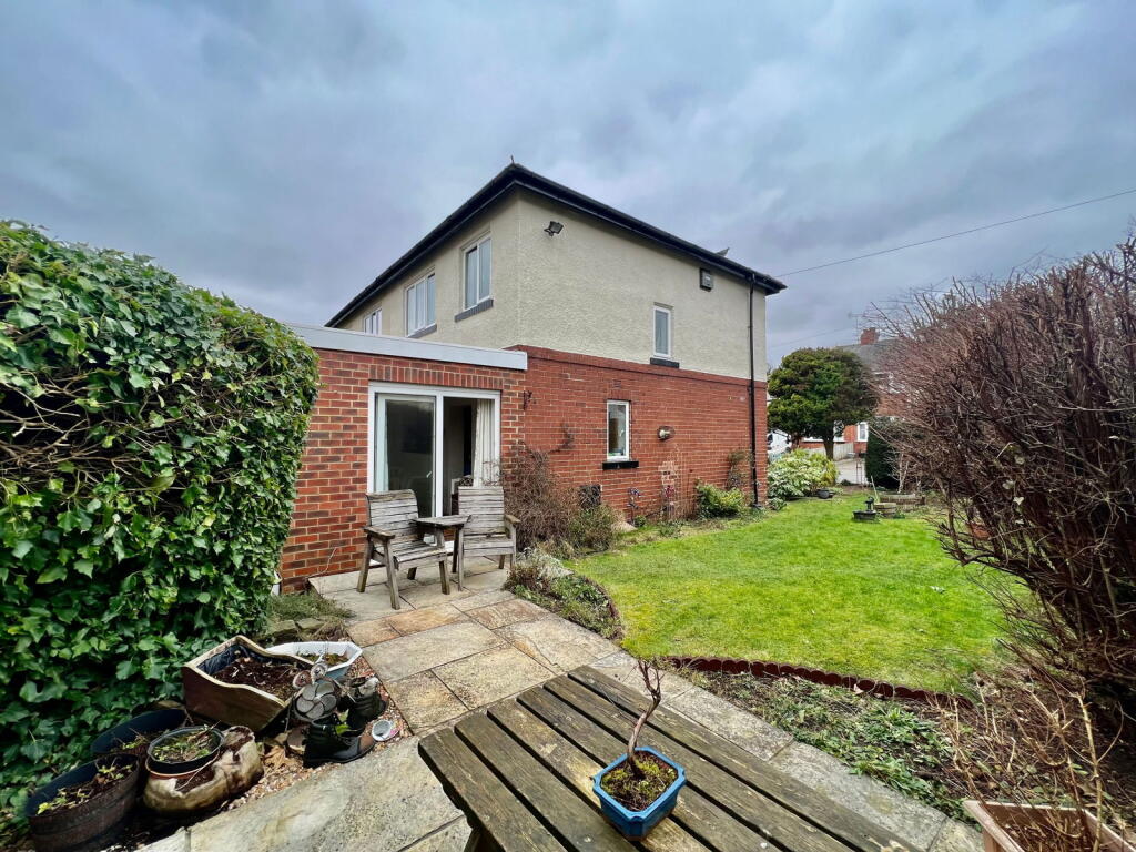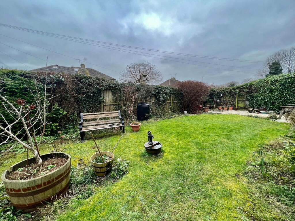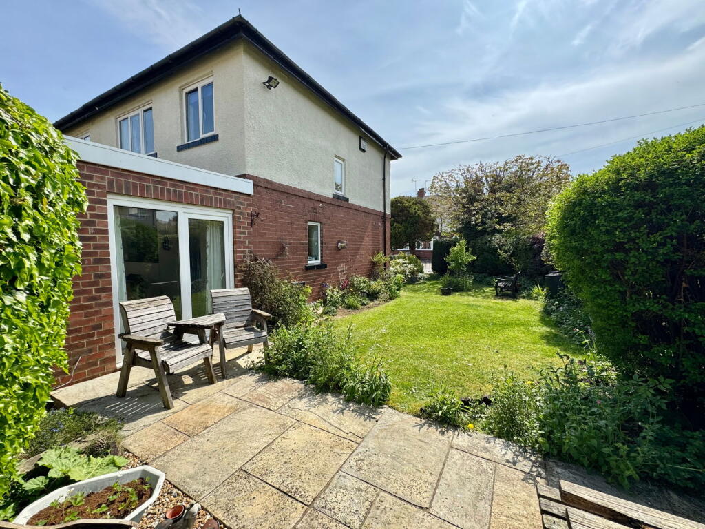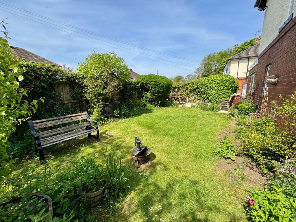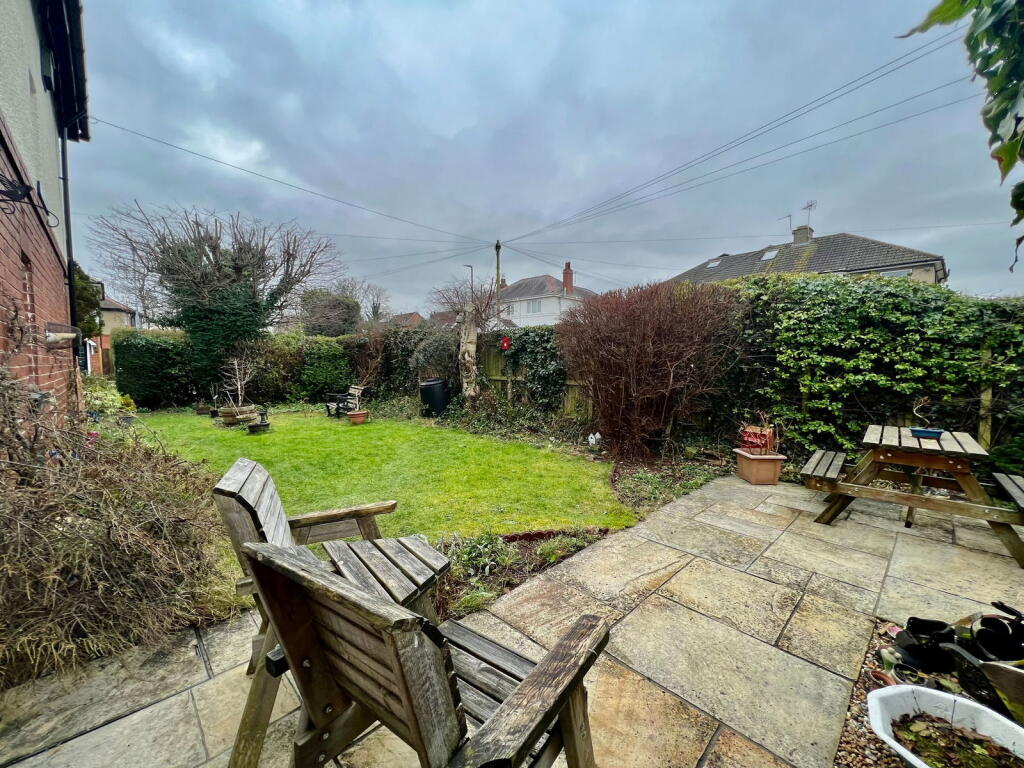 The property has a garden, as shown in the photos. The size is not specified, but it appears to be of a reasonable size for a semi-detached house.