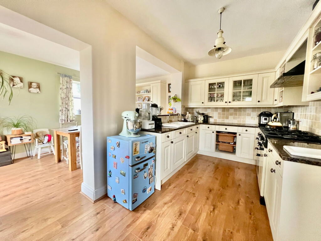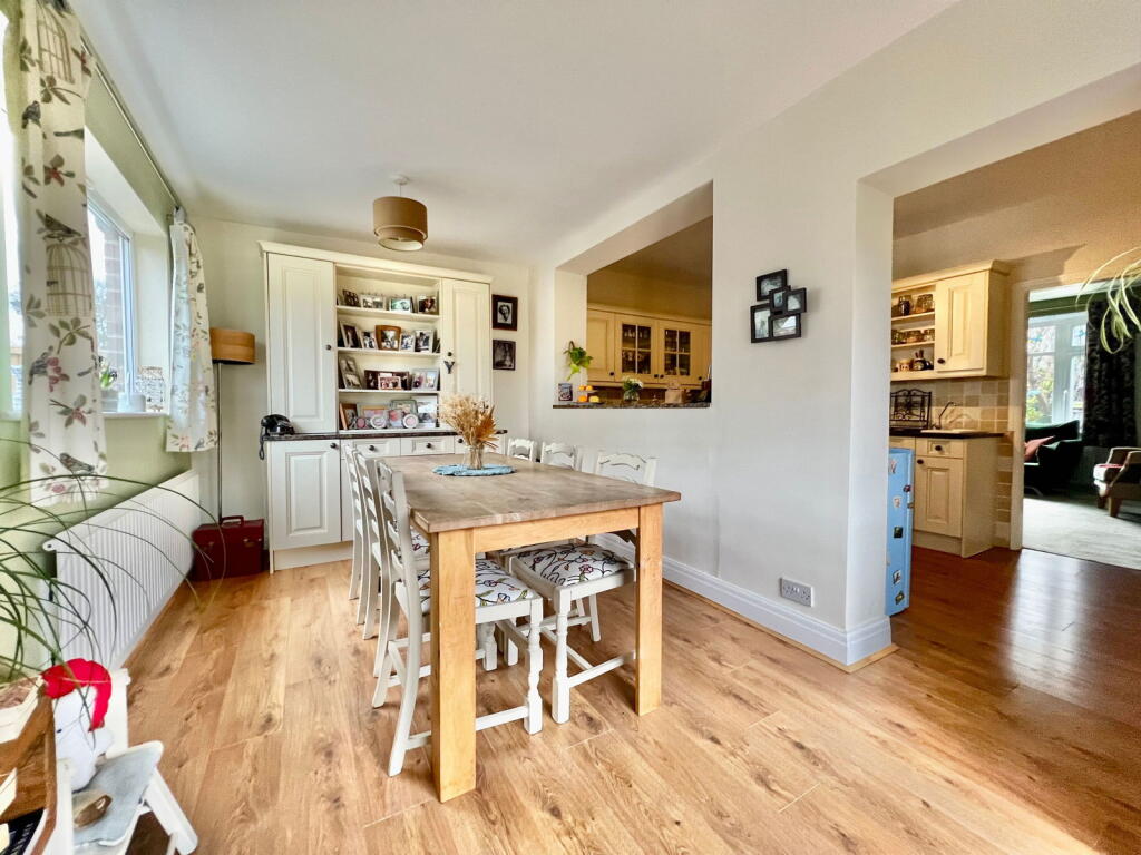 A popular style three bedroom semi-detached home enjoying a corner plot with mature gardens to front, side and rear. Having been extended to the rear the property now boasts a generous kitchen with dining space having direct access to the private garden.