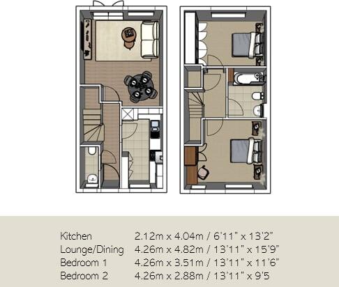 Nestled in a private cul-de-sac, this two-bedroom terraced home has been lovingly refurbished throughout to a high standard, and is available for full sale (Offers over £490,000) or at a 60% share with the shared ownership scheme (please enquire for further details). Subsidised rent currently £365/m