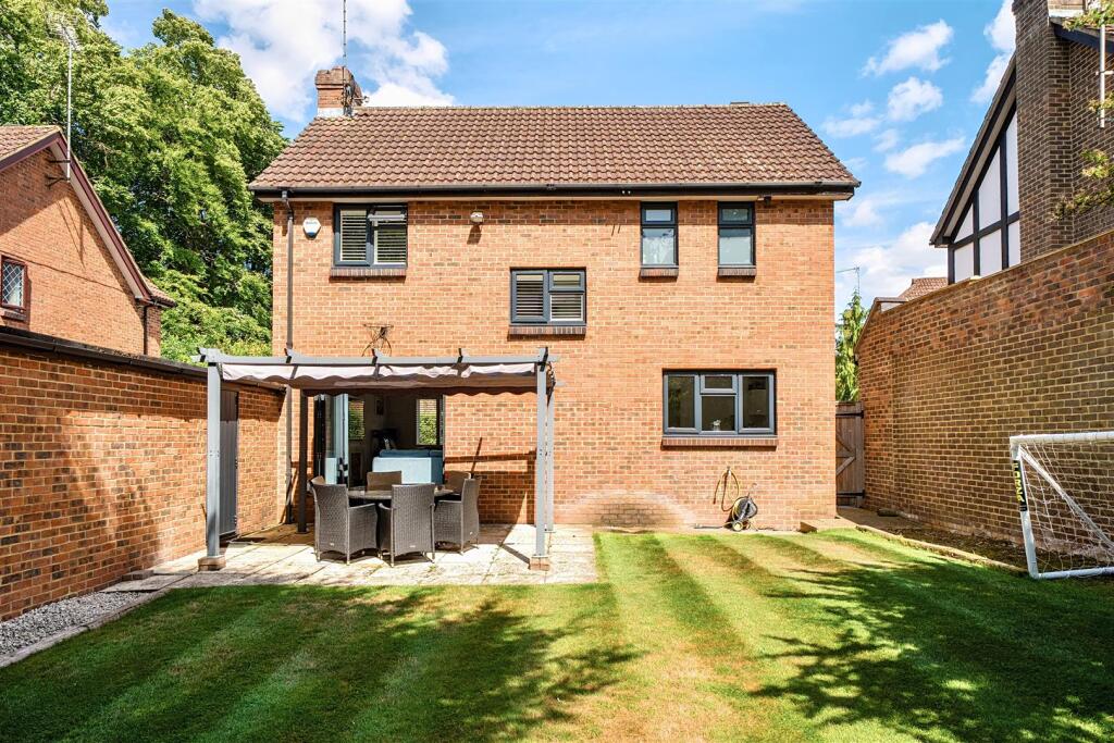 A beautifully presented, contemporary four bedroom detached house with two bathrooms situated in a leafy, quiet cul-de-sac close to the favoured Downsend, St Peter's and St Andrew's Schools. The property has a delightful secluded SW facing garden and driveway parking leading to a 32 ft garage.