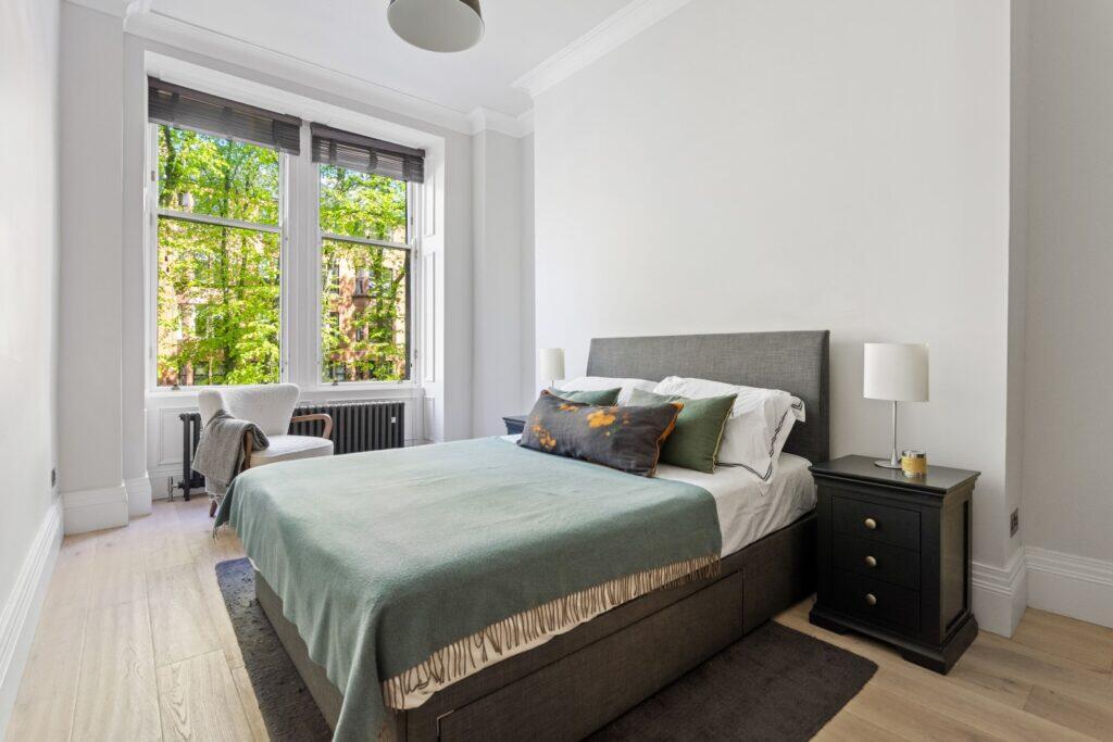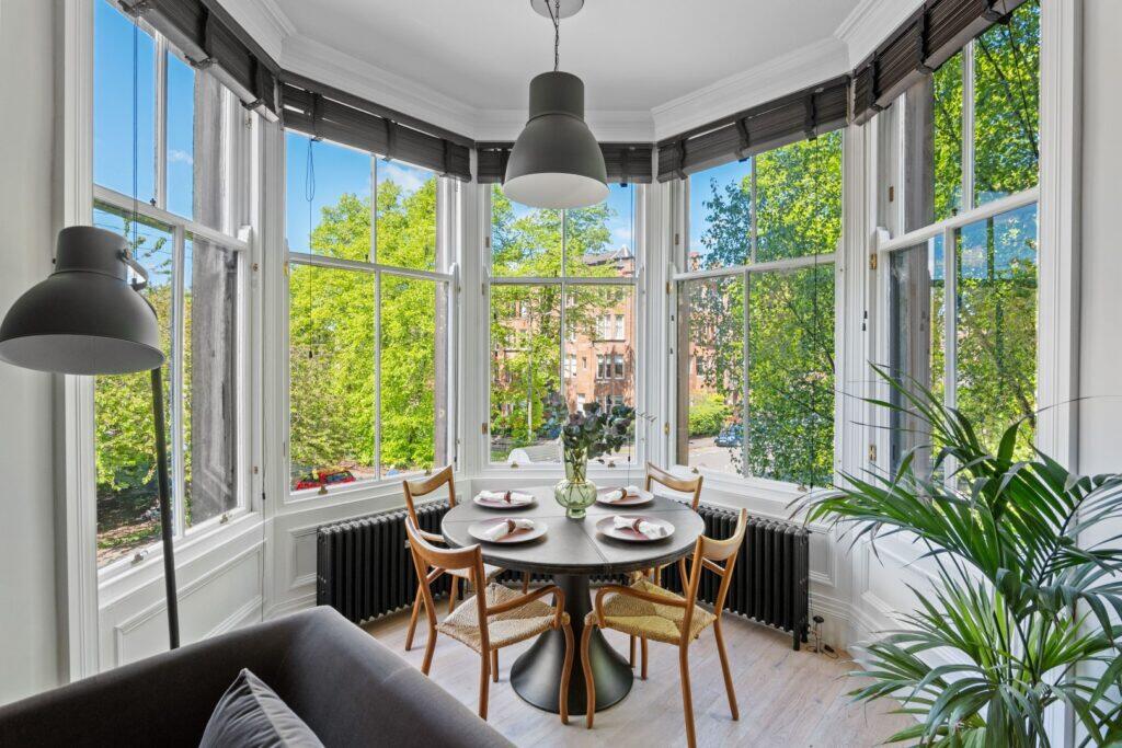This property is a 2 bedroom flat located in Hyndland, Glasgow. The flat itself has been recently renovated to a high standard, with a modern kitchen and bathroom. It benefits from a period features such as high ceilings and large windows, giving it a traditional feel. The location is excellent, with good transport links and local amenities nearby. While the property does not have a private garden, there is communal green space available. The list price is slightly above the average price per square foot for the area, but considering the condition and location, it could be considered reasonable.