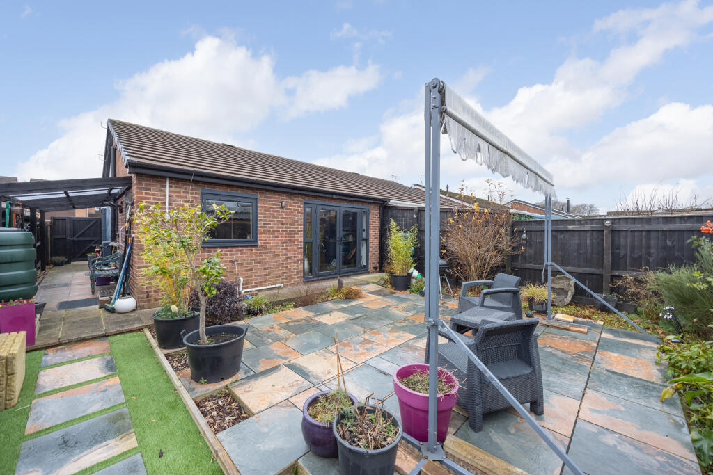 A refurbished bungalow in a well regarded area close to shops, bus route, parkland & woods. This stylishly presented bungalow features open plan living room to refitted kitchen, & refitted shower. UPVC d/g, refitted facias, modern electric heating, private landscaped gardens, garage & driveway.