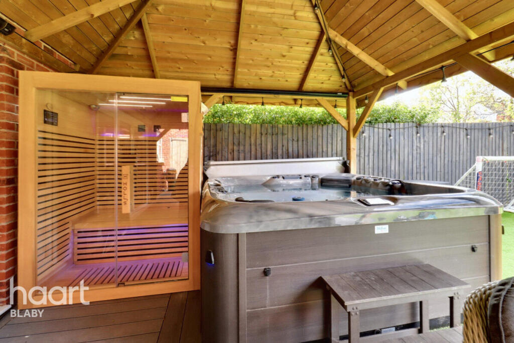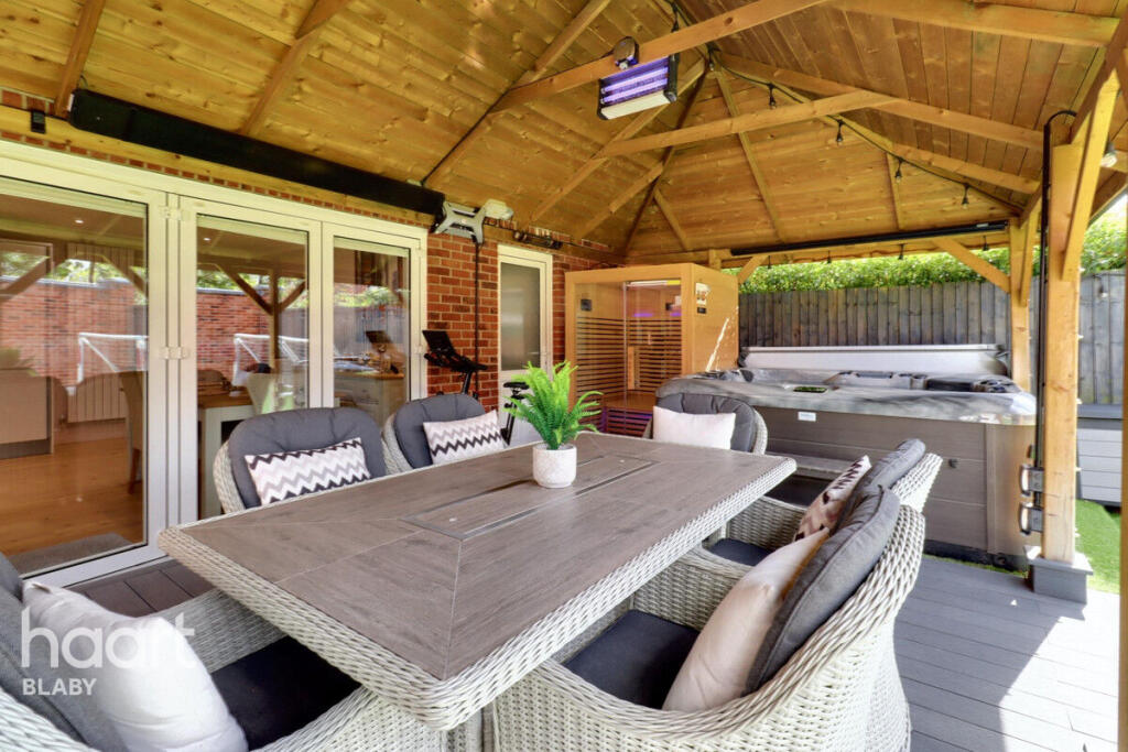 Stunning executive detached home on a private road with gated entrance. Features oak flooring, upstairs aircon, sauna, hot tub, outdoor kitchen, heated pergola with projector, formal lounge, snug, large kitchen diner, double garage with storage, block-paved driveway, master suite and luxury ensuite