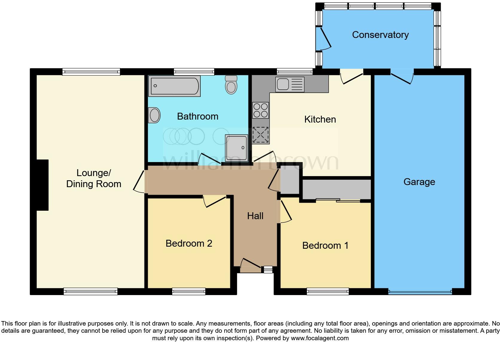 Detached bungalow with two bedrooms. This property offers both front and rear gardens and integral garage. Conveniently located close to bus stops.