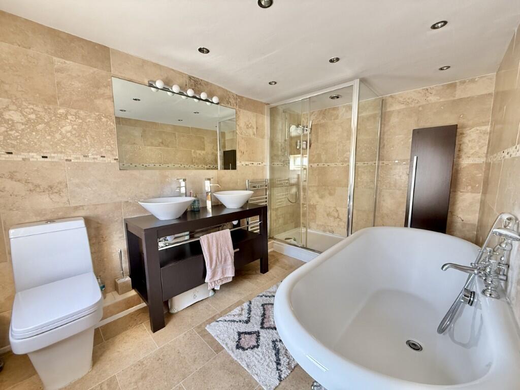 Located in the heart of the village this well-established four bedroom family home has a mature South West facing garden and a guest annexe.