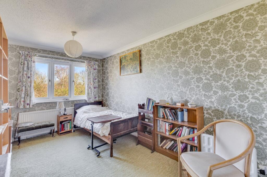 This entirely individual detached family house of circa 1834 sq. ft was built in 1969 and occupies a superb plot of approximately 0.426 of an acre, with fine open countryside to both the front and rear. The bright and well-planned accommodation requires updating, is approached via a double front...