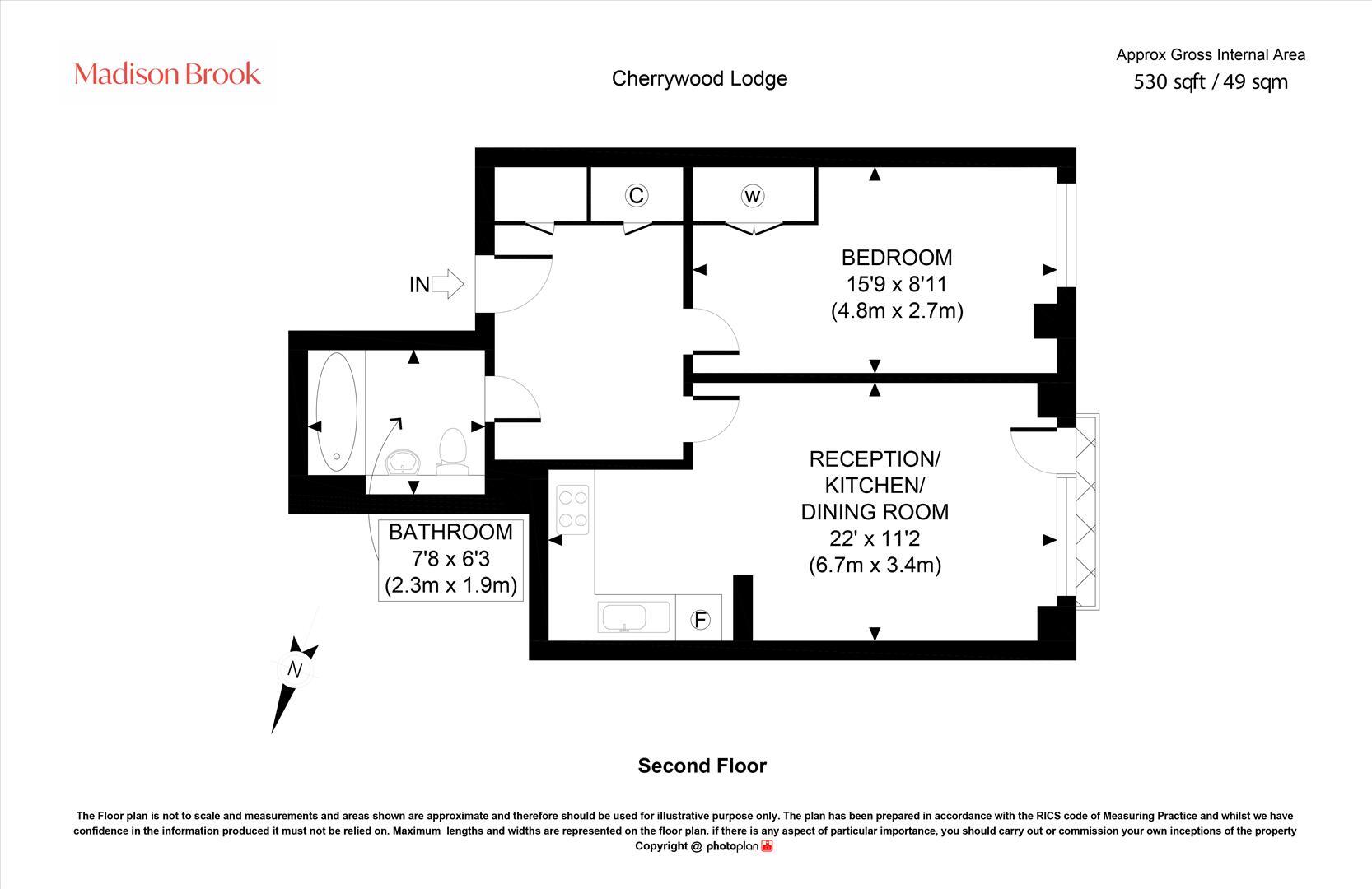 Set on the second floor of Cherrywood Lodge, this chain-free one-bedroom apartment offers approximately 530 sq. ft. of well-planned living space. The property centres around a bright open-plan reception/kitchen/dining room, with a modern fitted kitchen and good space for both relaxing an...
