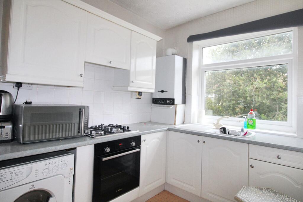 Available immediately is this good size two bedroom first floor flat to be let on a unfurnished basis. The accommodation comprises; entrance area, lounge, kitchen to the rear of the property with a good range of wall and base units, complimenting work surfaces, built in gas hob and electric ov...