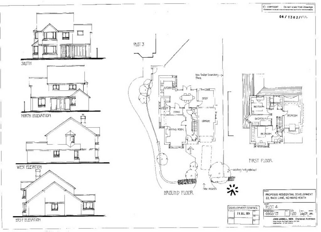 An excellent opportunity to purchase a large building plot having full planning permission, with conditions, for the erection of four new dwellings with garages. Application Number: 04/01382/FUL