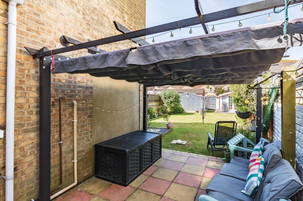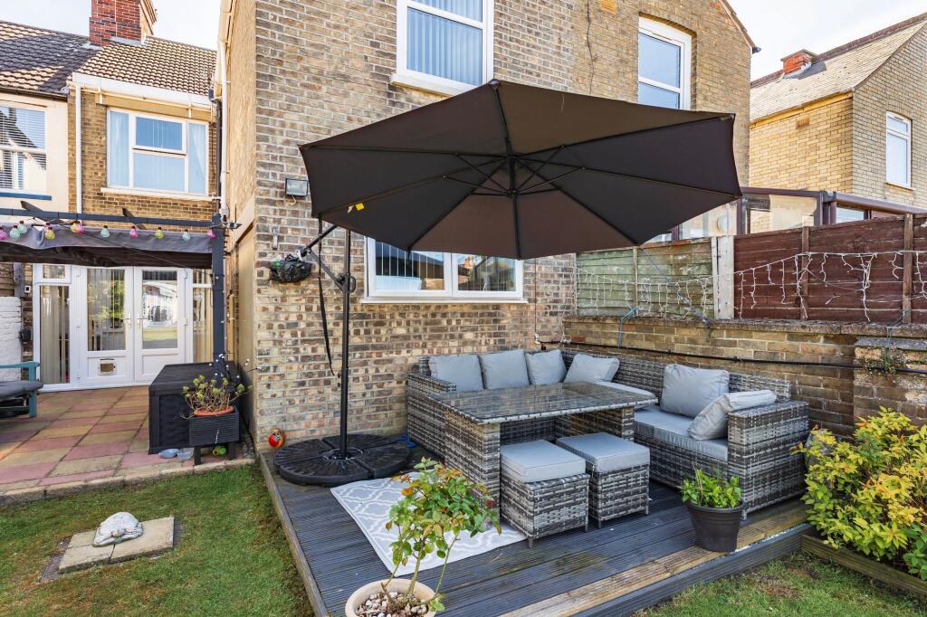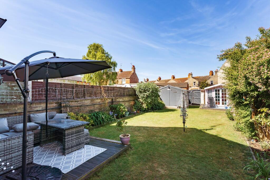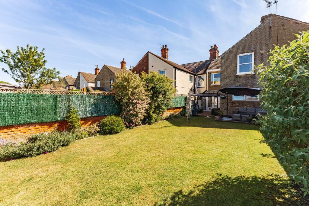 This three-bedroom terraced house is located on Royal Avenue in Lowestoft, Suffolk. The property benefits from a good-sized garden, as shown in the provided images. The interior appears to be well-maintained and recently decorated, with a modern kitchen and updated bathrooms. The location is convenient, with nearby transportation links and schools. However, the Ofsted ratings of the nearby schools are mixed, with some requiring improvement or showing serious weaknesses. The list price of £265,000 is higher than the average price for the area (£177,500), but comparable to other similar properties on Royal Avenue. The property is larger than the average size in the area (1239 sqft vs 902 sqft), which may justify the higher price. More information on the plot size would be beneficial in a full valuation.
