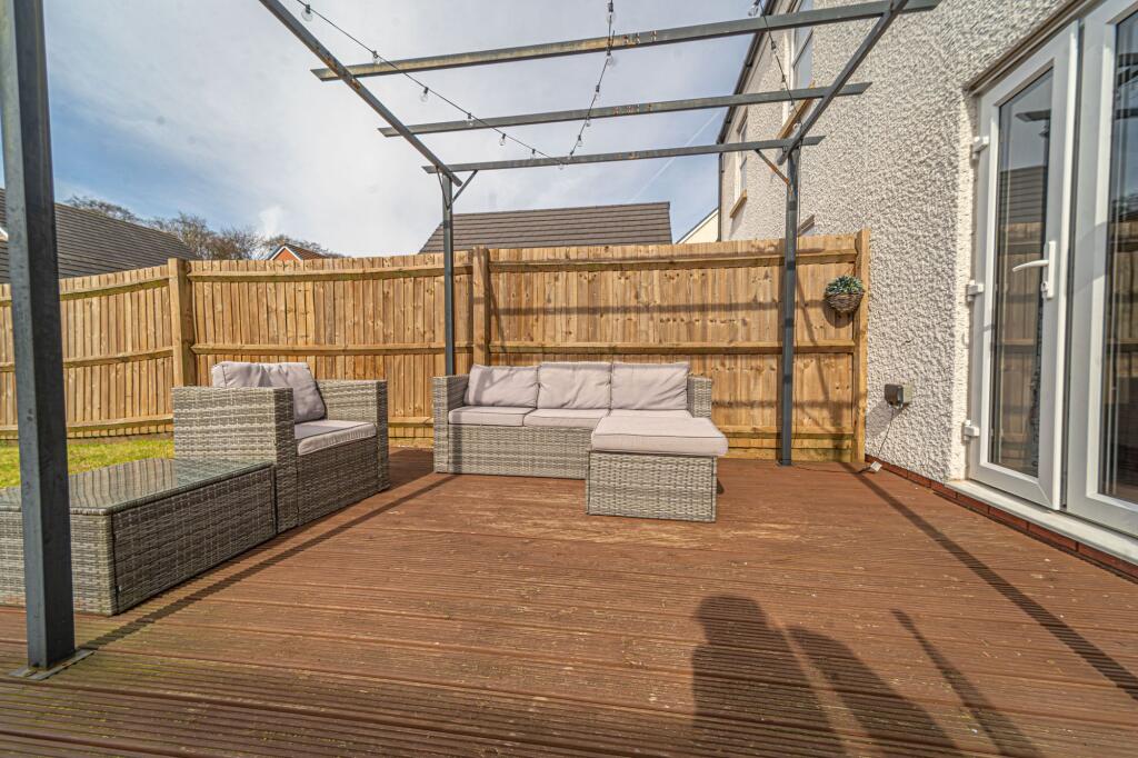 This property is a 4 bedroom, 2 bathroom semi-detached house located in Pontrhydyrun, Torfaen, Wales. The list price is £325,000. The property benefits from a garden with a patio area and a detached garage.
