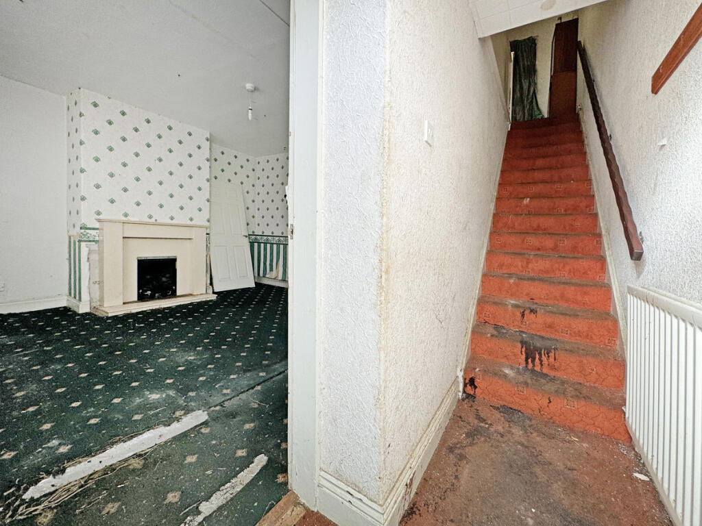 This three-bedroom terraced house in Hartlepool is listed at £35,000. The property requires extensive renovation, as evidenced by the images showing damaged walls, flooring, and outdated fixtures. While the location offers proximity to schools and transportation, the overall condition significantly impacts its value. Comparable properties in the area are listed at higher prices, suggesting that this property is priced lower due to its condition. The lack of information regarding plot size prevents a comprehensive land assessment.