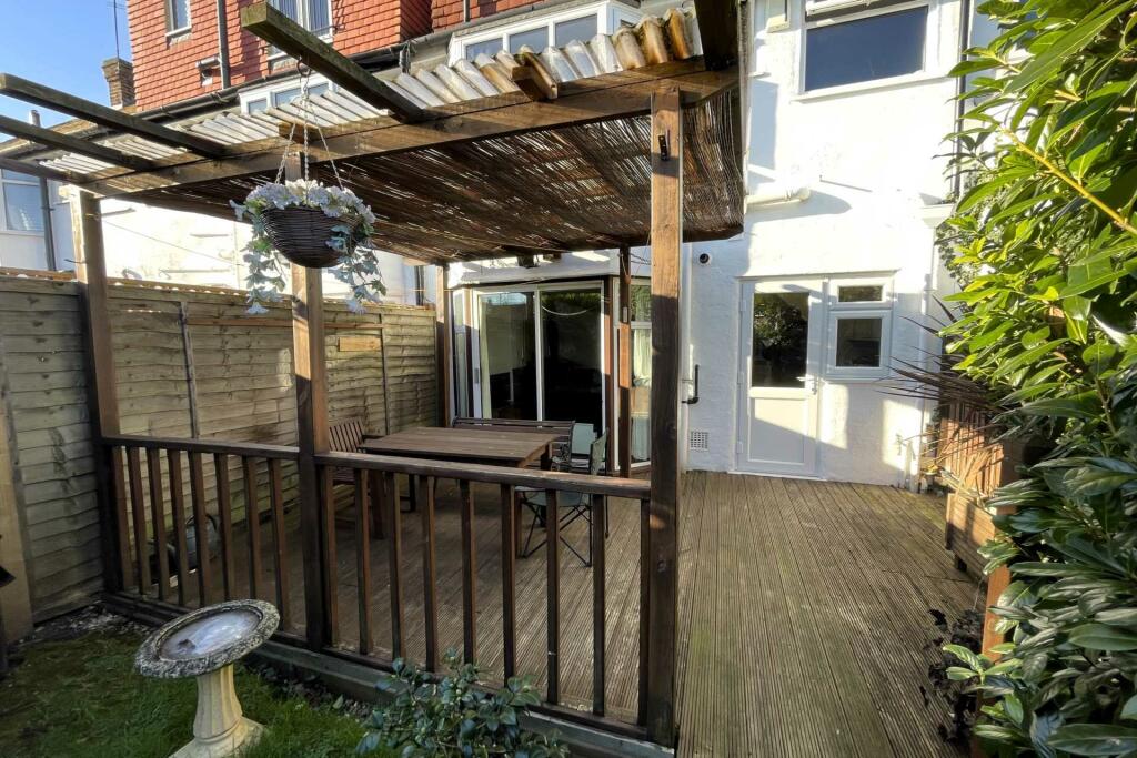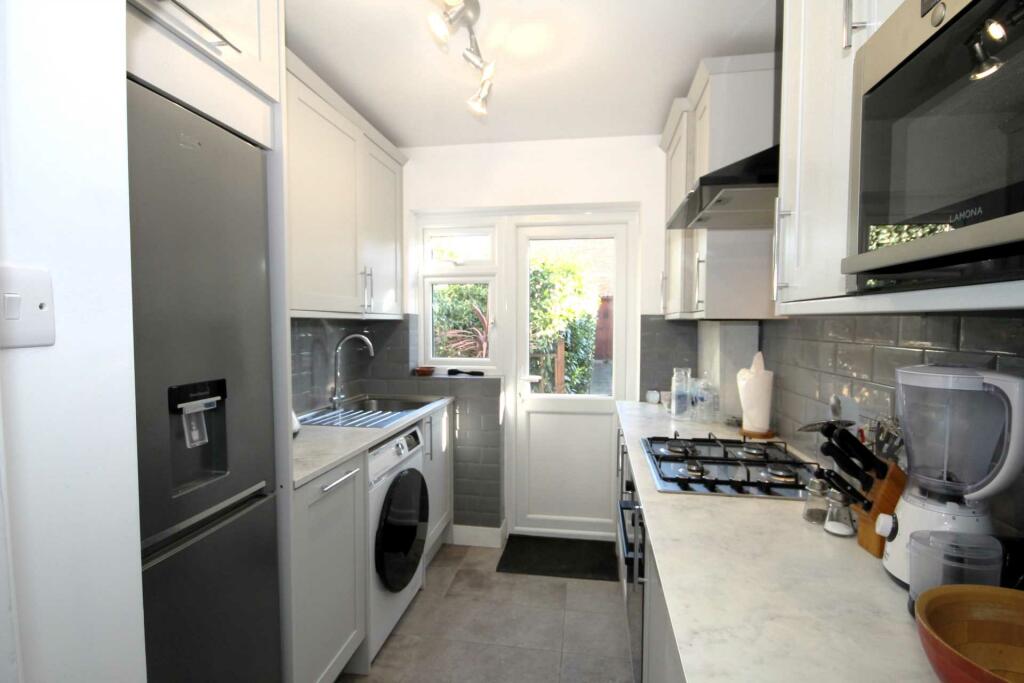 An extended Crouch built ‘Sutton` style house in very good decorative condition. Three double bedrooms, family bathroom plus ensuite shower room, gas central heating, double glazing, off street parking and double garage. A short walk from the shops, restaurants and transport links at Stonecot Hill.