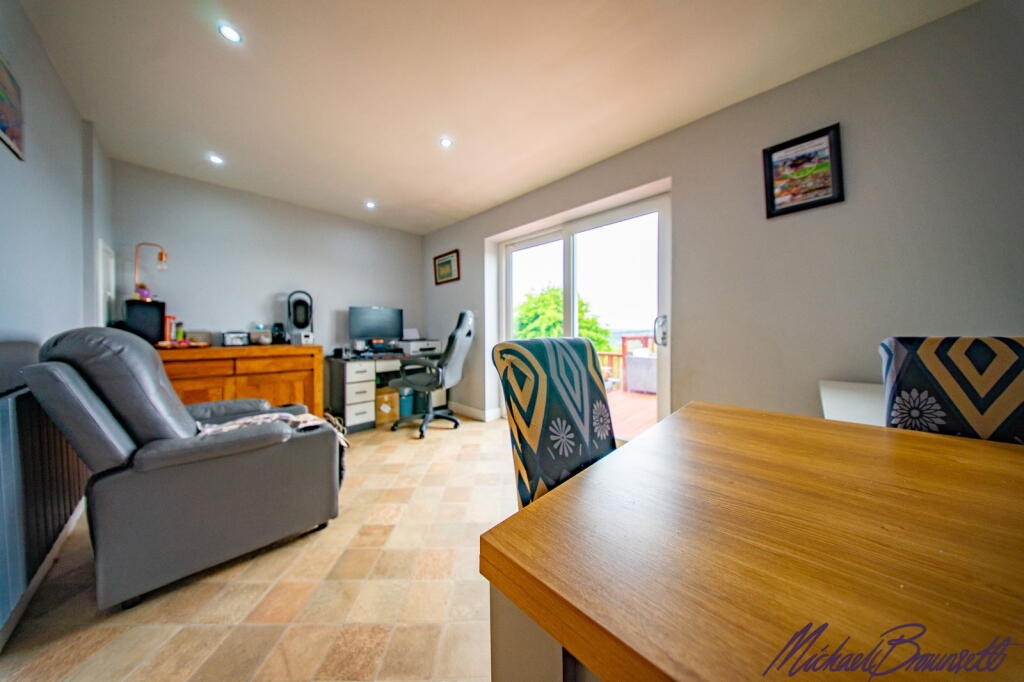 EXTENDED 3 BEDROOM SEMI WITH BALCONY, GARAGE, NEW ROOF, CCTV & EV CHARGER. STUNNING VIEWS TO OGDEN & EMLEY MOOR. MODERN INTERIOR, ARTIFICIAL LAWNS & SPACIOUS REAR GARDEN.